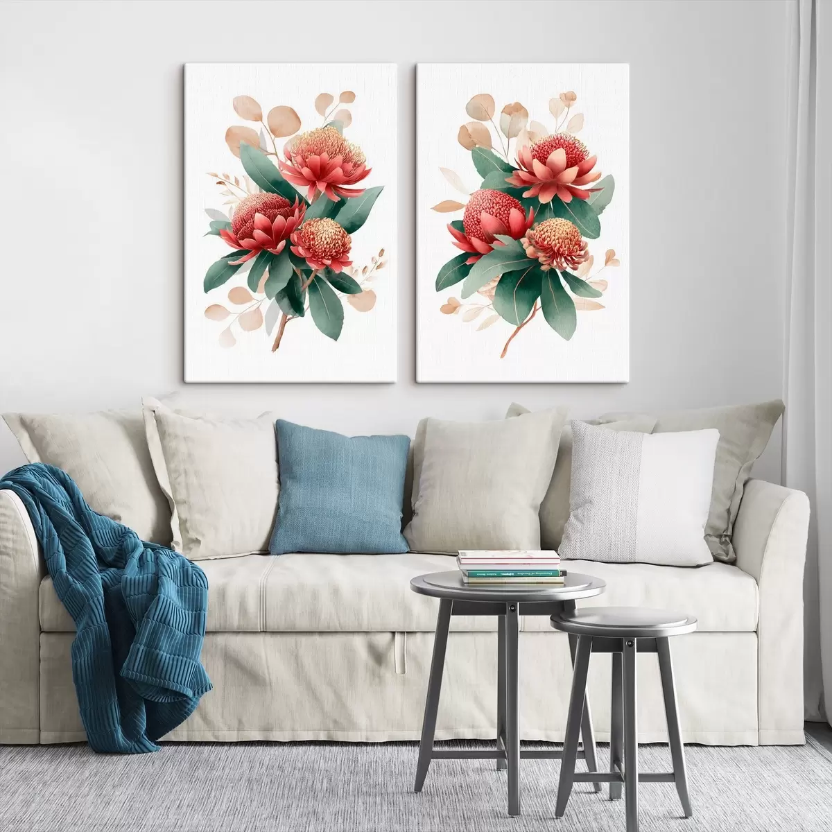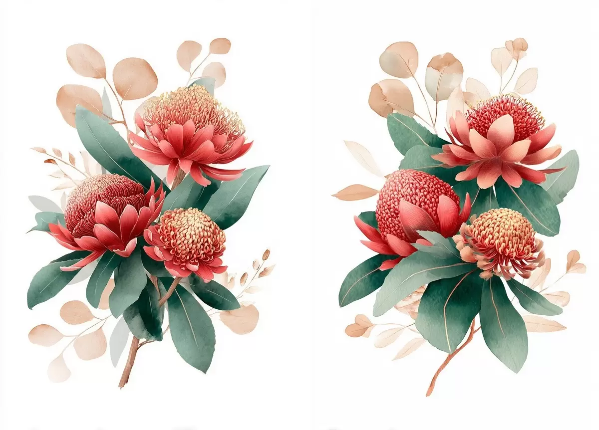 Maalid Lilleseade proteadega korallpunases värvipalettis valgel taustal Nr m01096