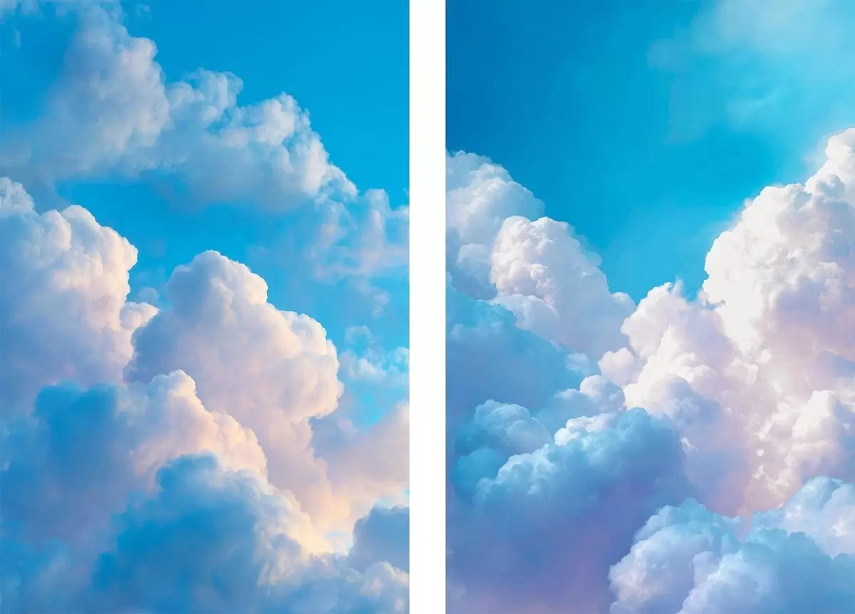 Maalid Dekoratiivne kompositsioon majesteetlike pilvedega sinise taeva taustal Nr m01101