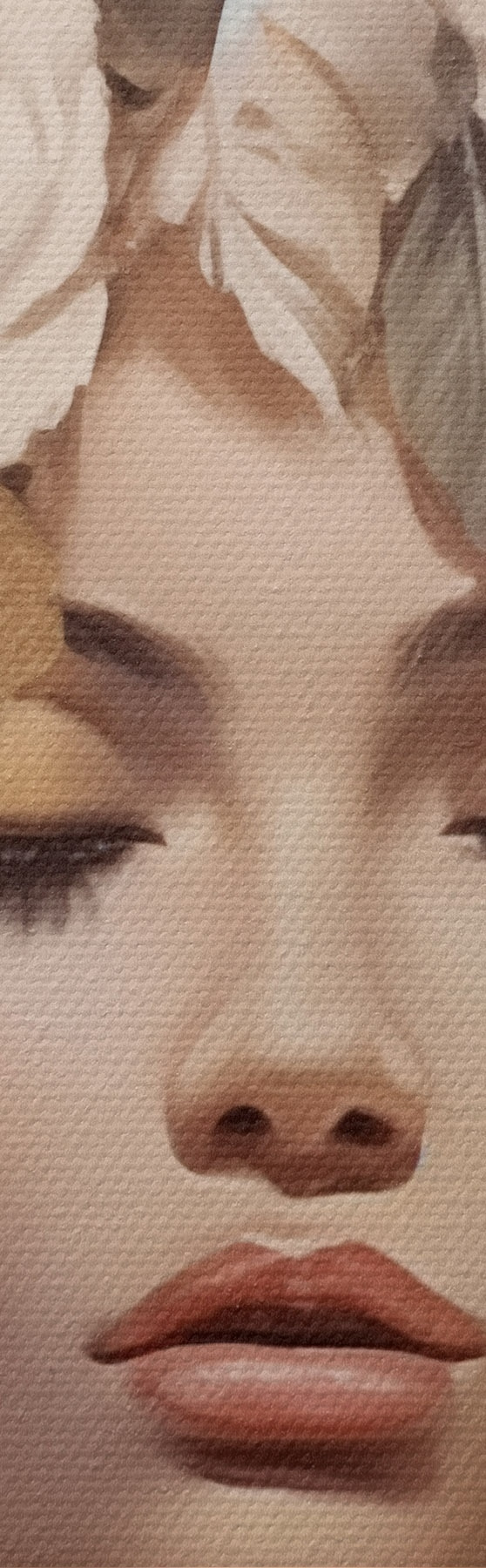 Selle lõuendi peenike niidipunus meenutab professionaalse kunstniku lõuendi pinda.