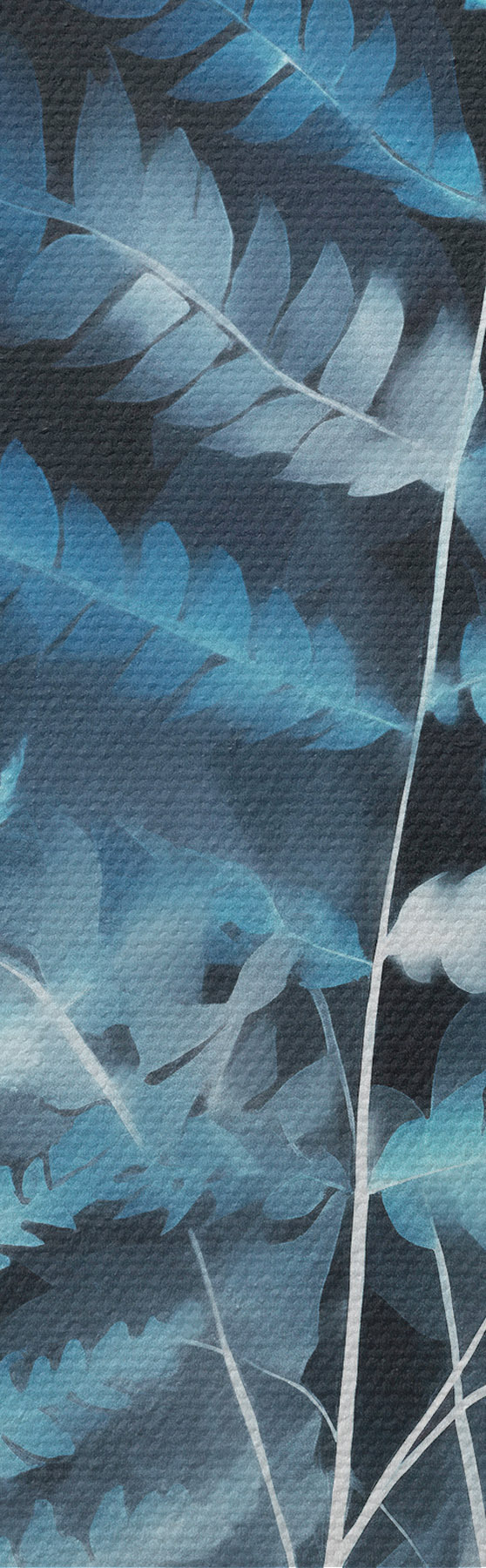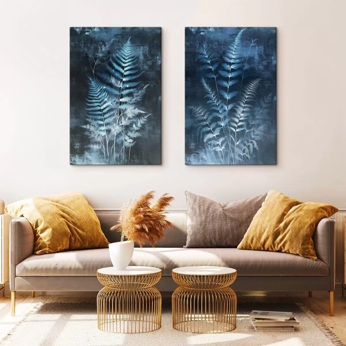 Maalid Sinised sõnajalad ja taimed tumedal, tekstuurse taustaga, rõhuasetusega keerulistel detailidel, röntgeniefekt Nr m01121