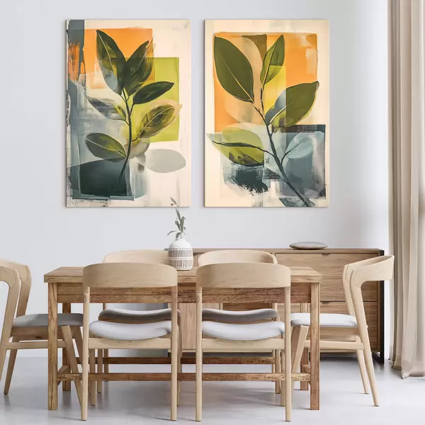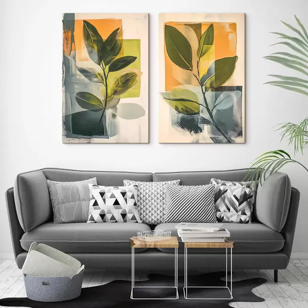 Maalid Lehtedega oksad abstraktsel taustal Nr m01132