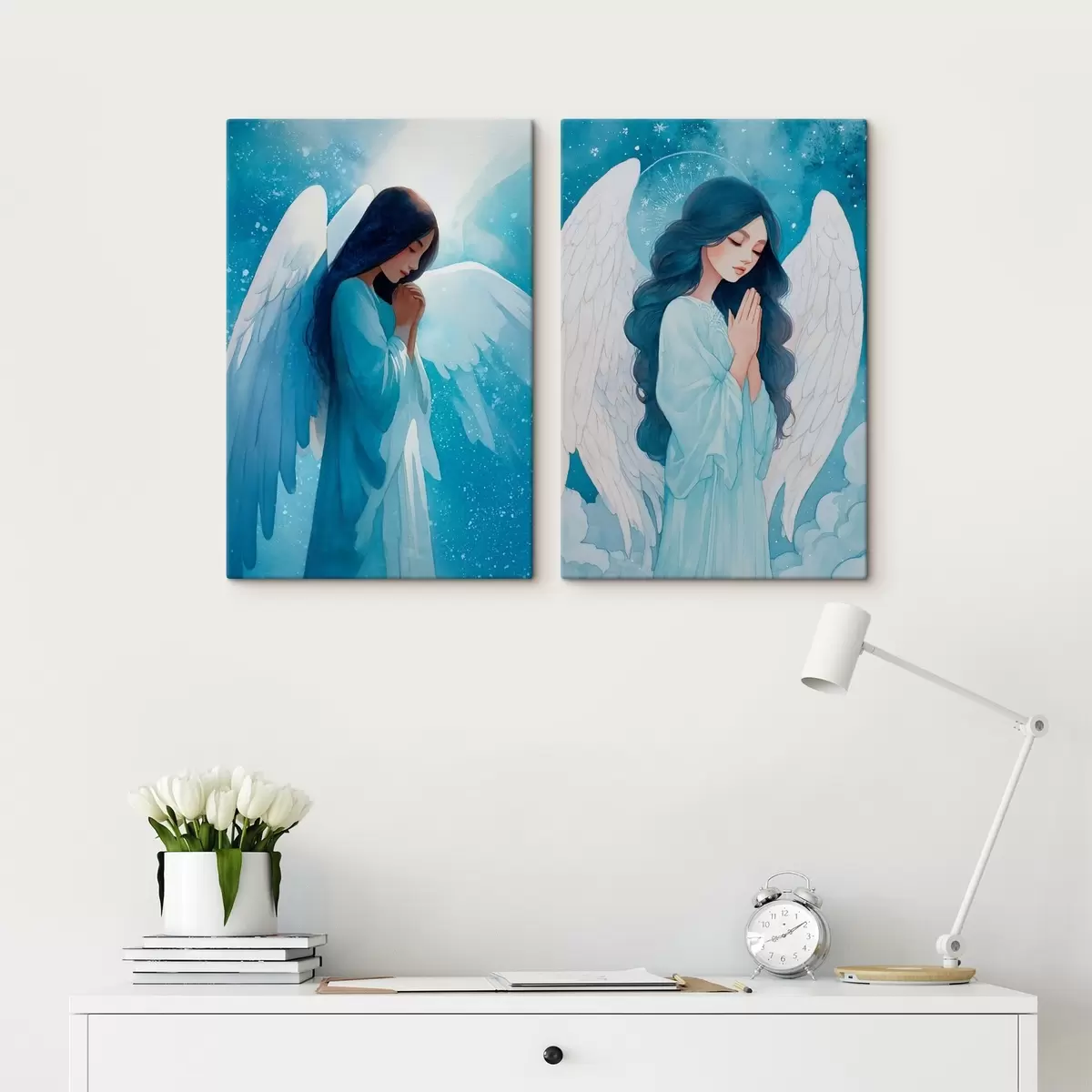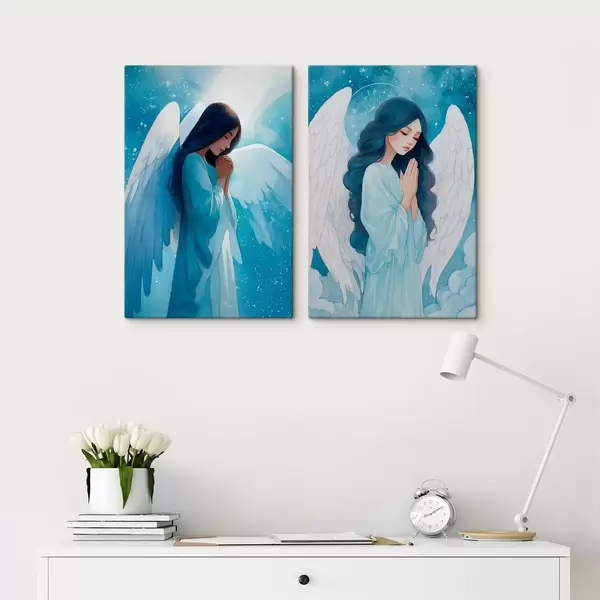 Maalid Kaasaegne sakraalkunst akvarellstiilis, millel on kujutatud sinistes rüüdes kaitsjaingel. Nr m01153