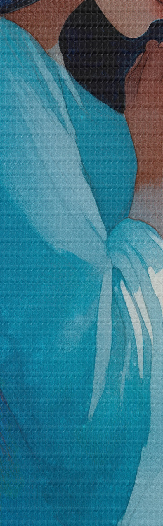 Selle lõuendi peenike niidipunus meenutab professionaalse kunstniku lõuendi pinda.