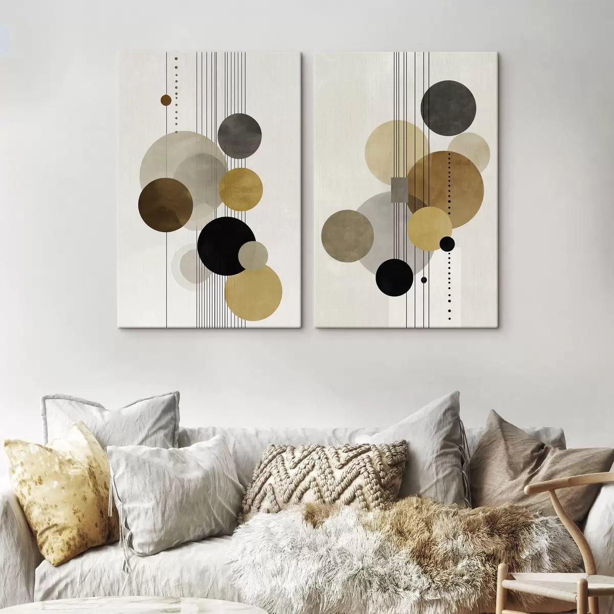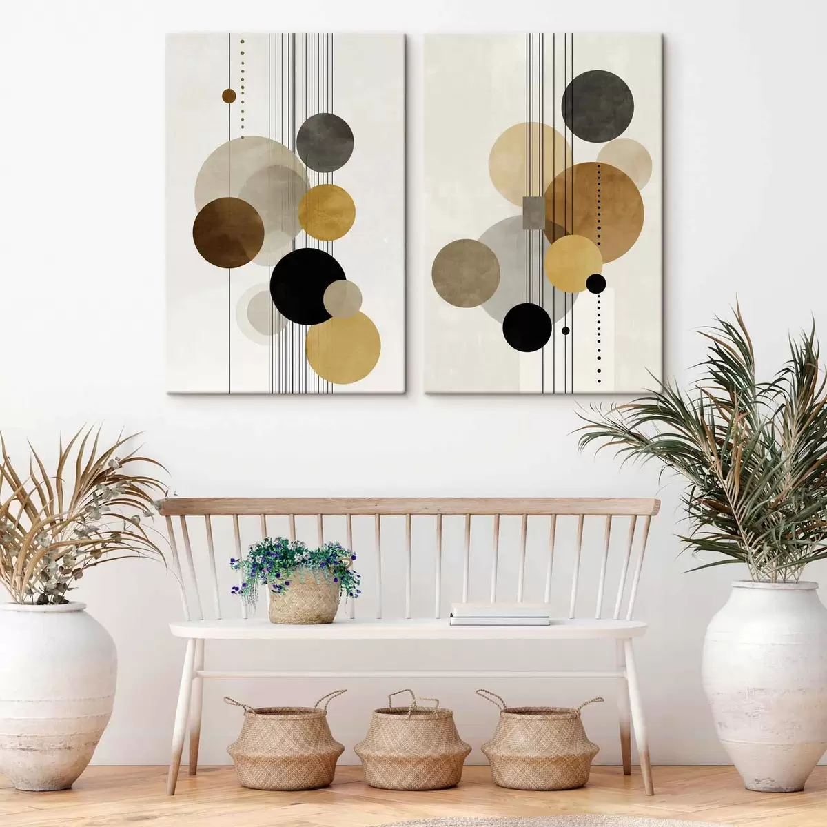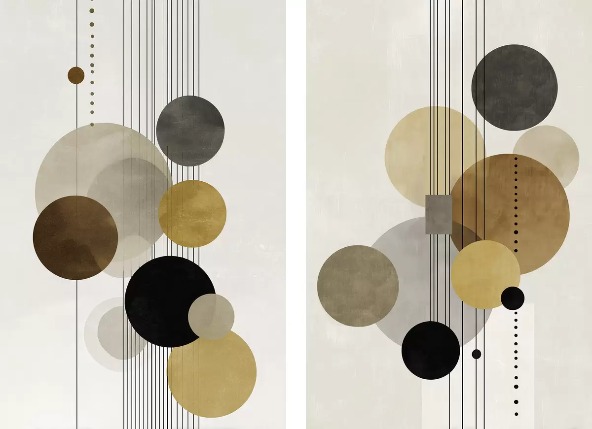 Maalid abstraktne kompositsioon ringide ja joontega soojades värvides Nr m01182