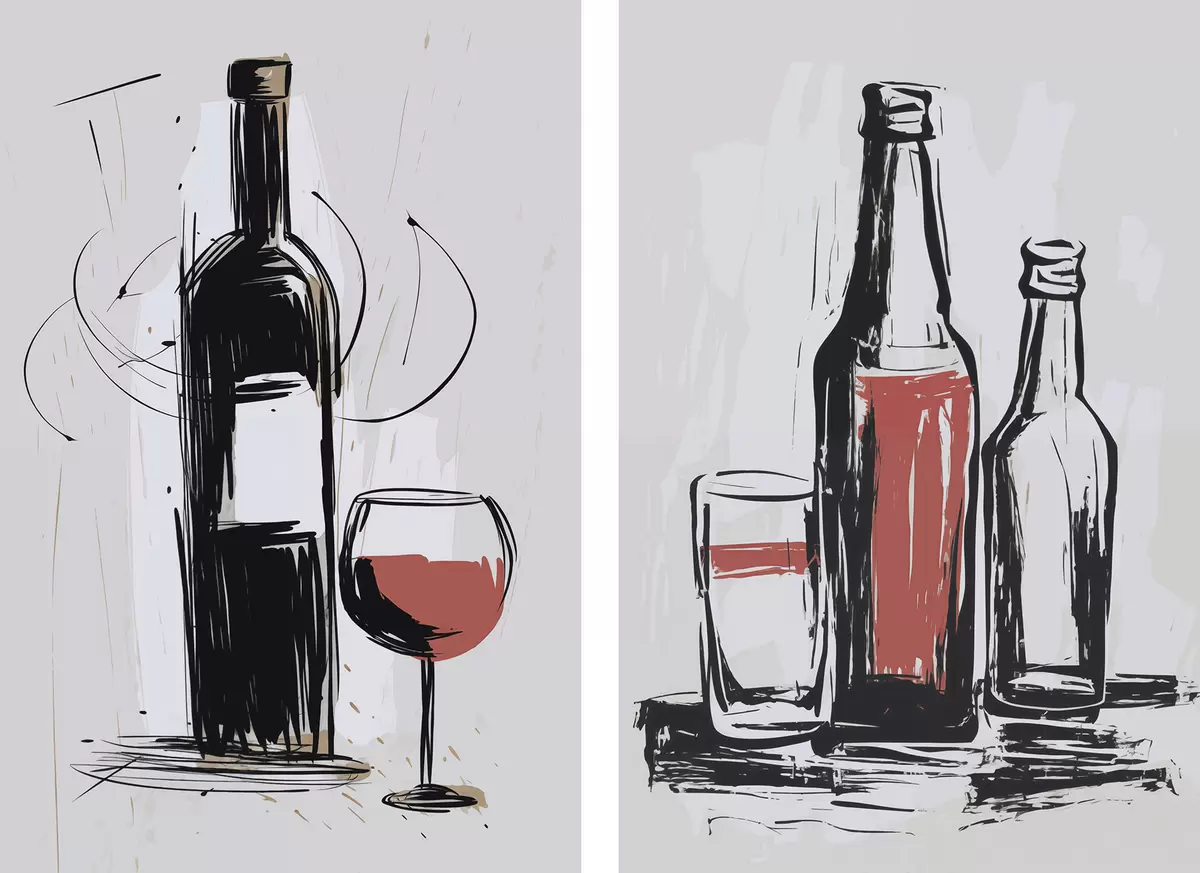 Maalid Pudelid ja klaas Nr m01223