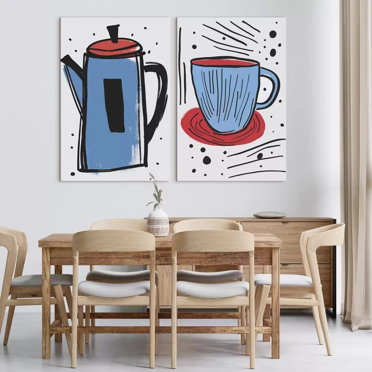 Maalid Primitiivse joonistuse kohvikan ja tass Nr m01225