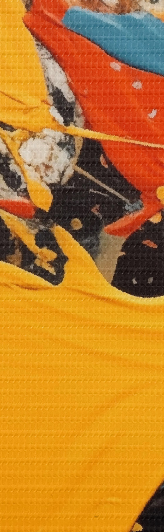 Selle lõuendi peenike niidipunus meenutab professionaalse kunstniku lõuendi pinda.