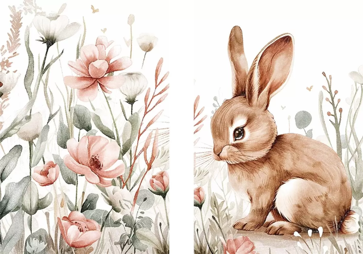 Maalid Jänes lillede kompositsioonis Nr m01299