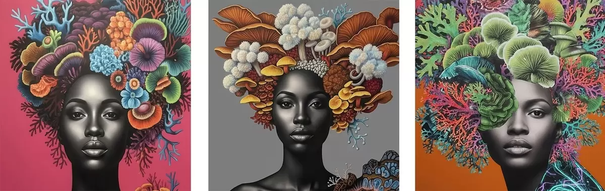 Maalid Psühhedeelne portree naisest seentega Nr m01308