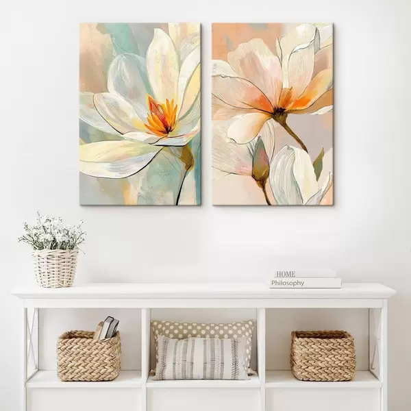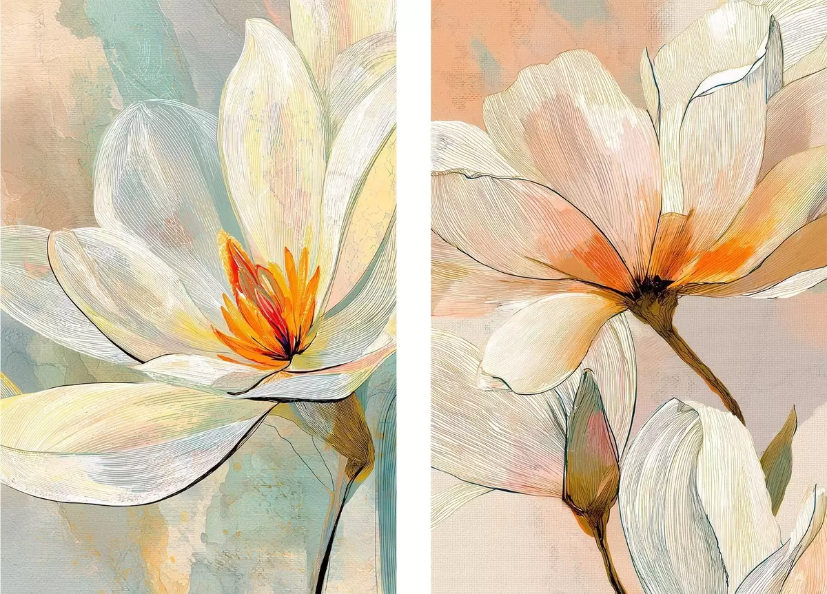 Maalid Graafiliste kontuuridega magnoliad modernse kunsti illustratsioonistiilis Nr m30032