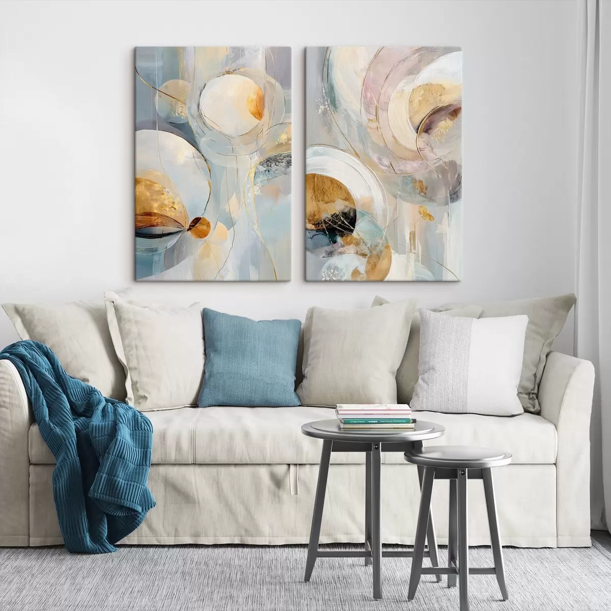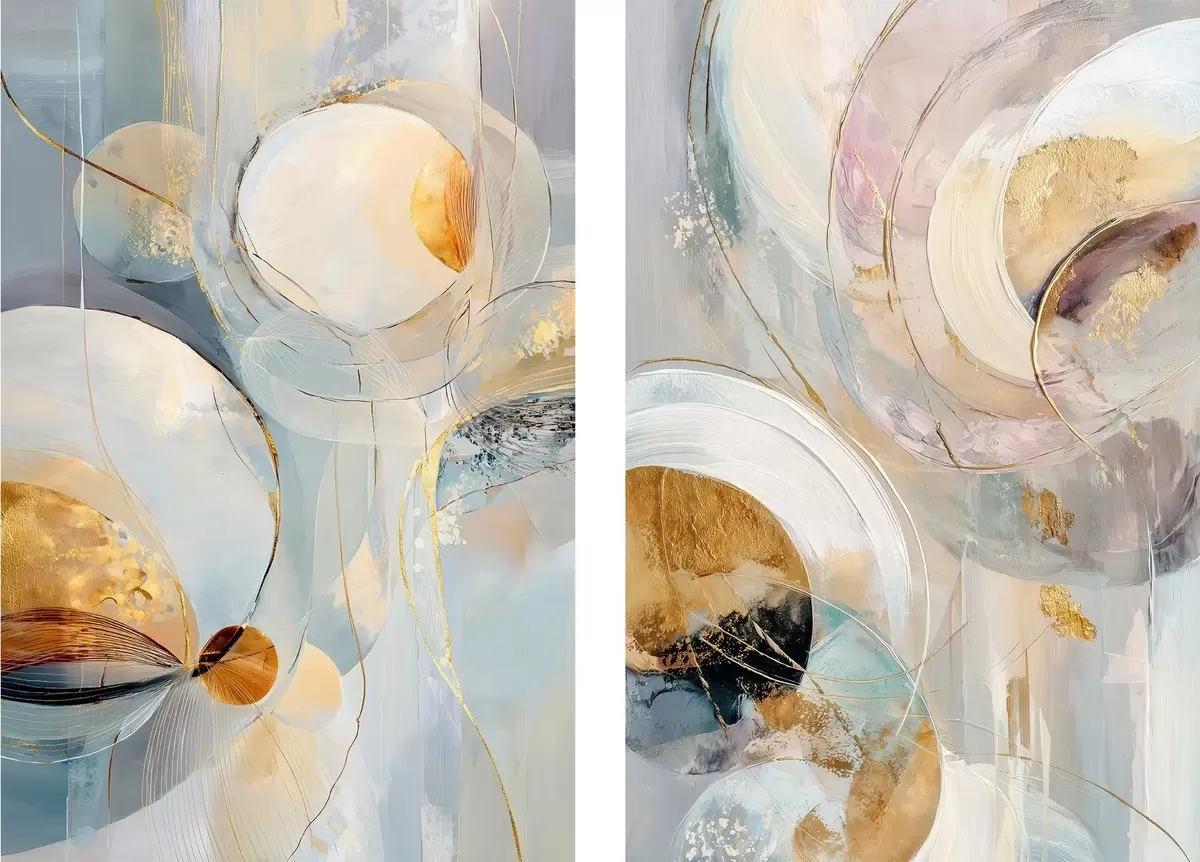 Maalid Kunstiline diptühhon läbipaistvate ringide ja väljendusrikaste pintslitõmmetega Nr m30038