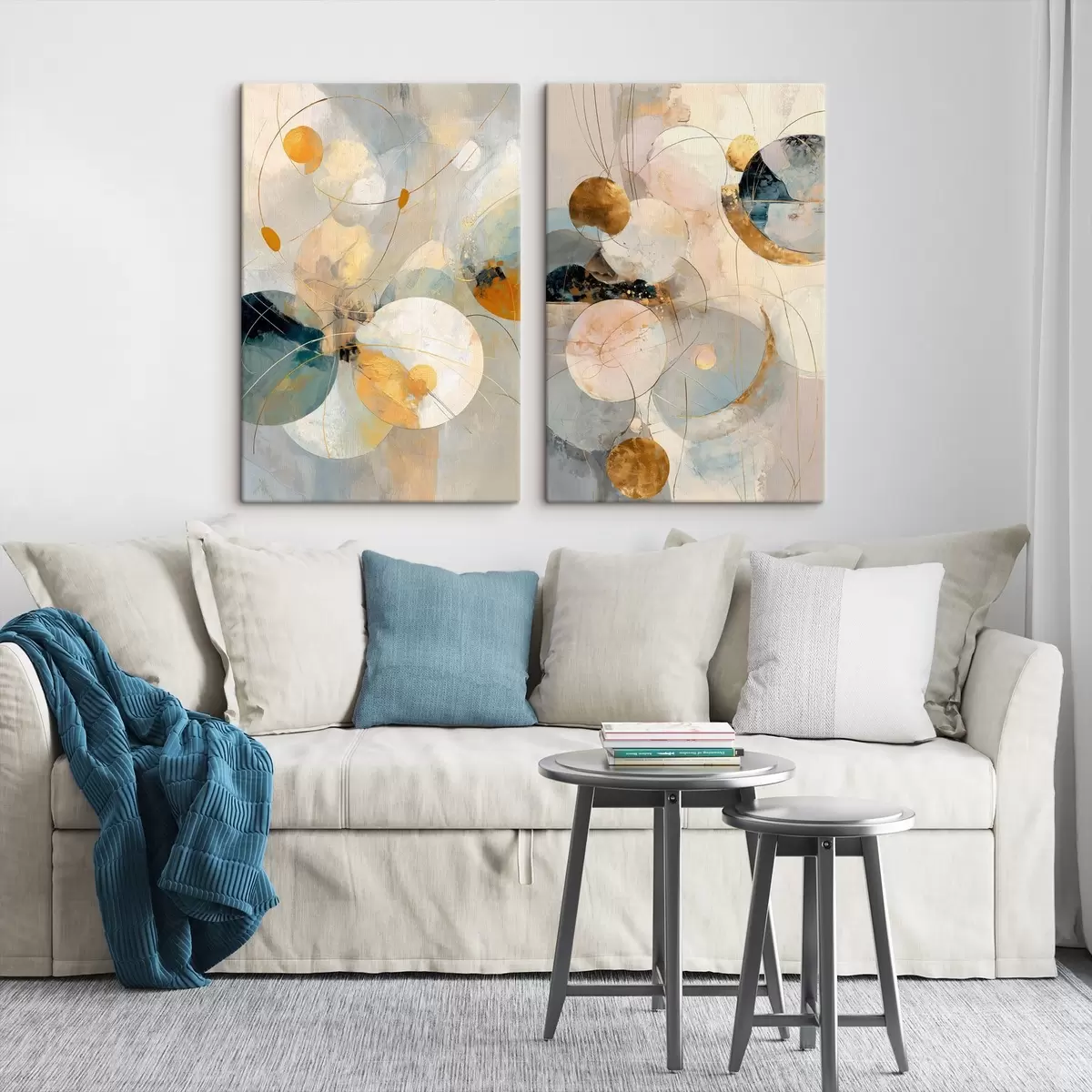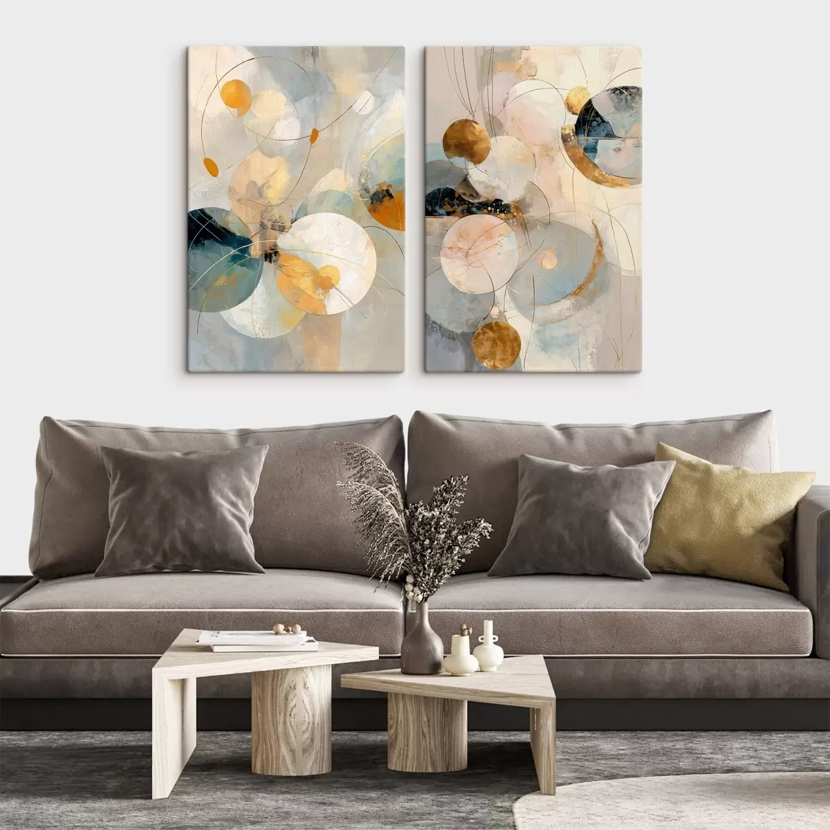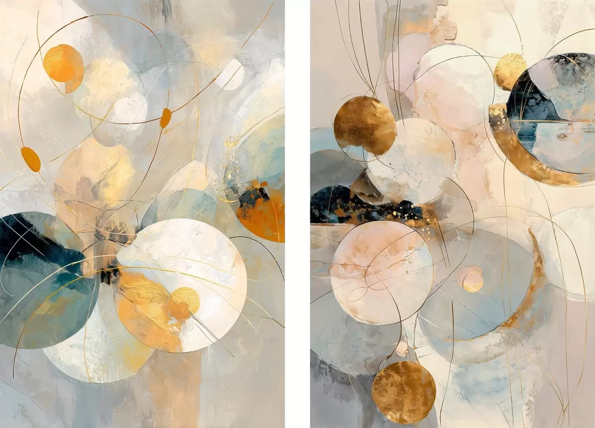 Maalid Dekoratiivne kunst sinise-kreemika toonides pehme valguse efektiga Nr m30039