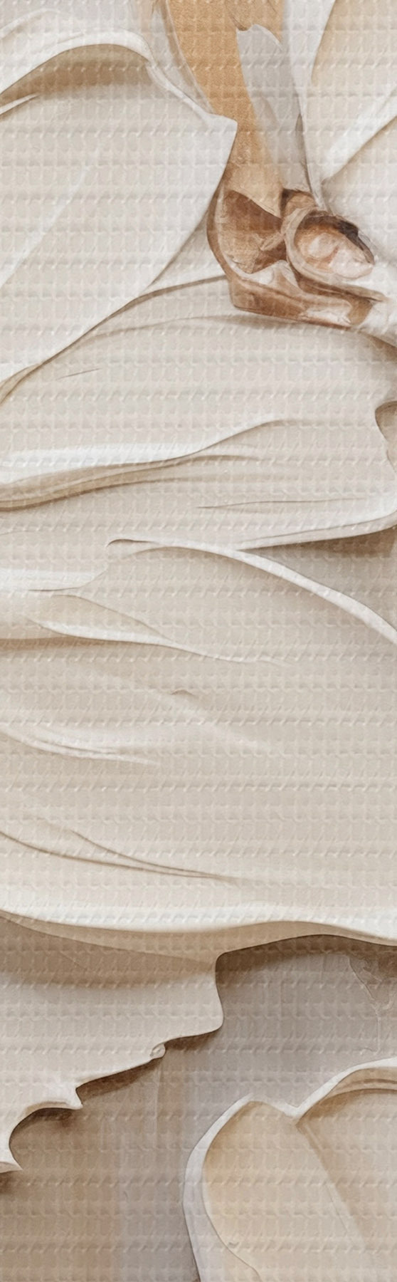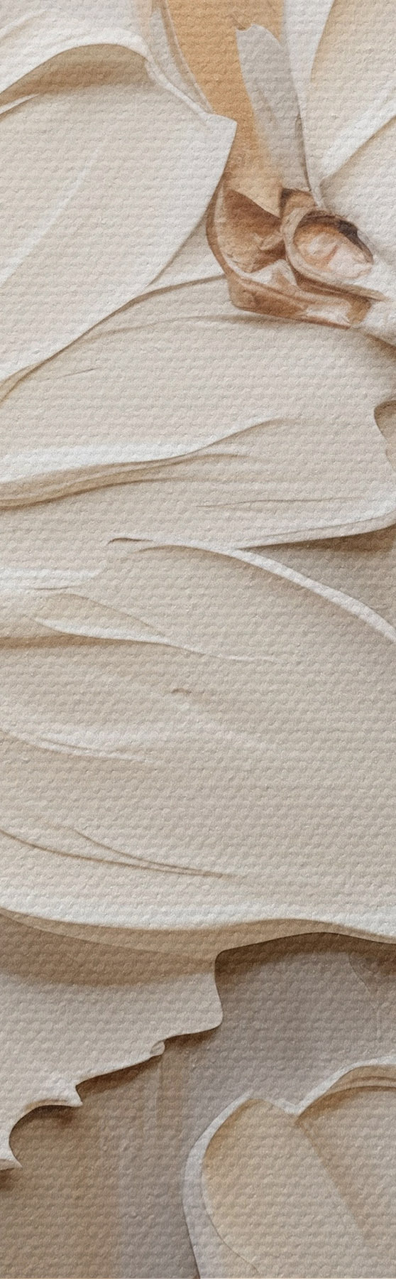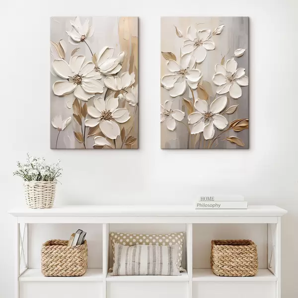 Maalid Abstraktsed valged lilled tekstuuriga kroonlehtedega neutraalsel taustal, millel on peenikesed pintslitõmbed. Nr m30057