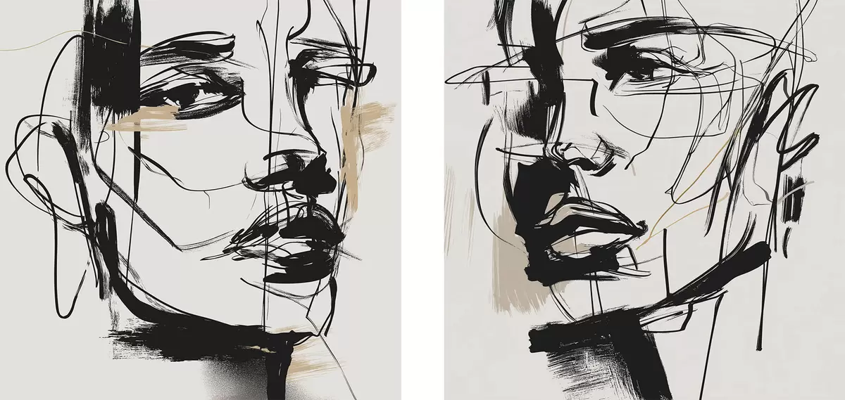 Maalid Minimalistlikud portreed mehest ja naisest Nr m30066