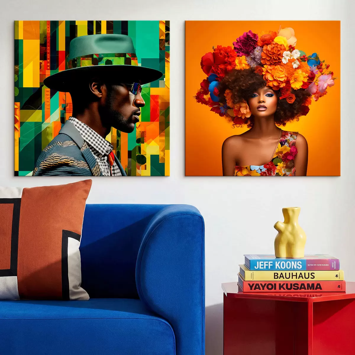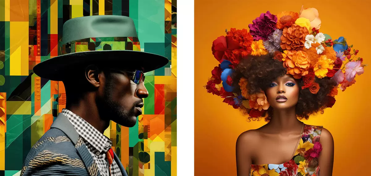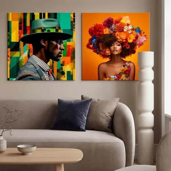 Maalid Portree mütsiga mehest ja suure lillekrooniga naisest Nr m30102