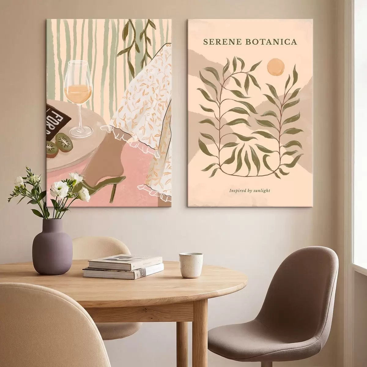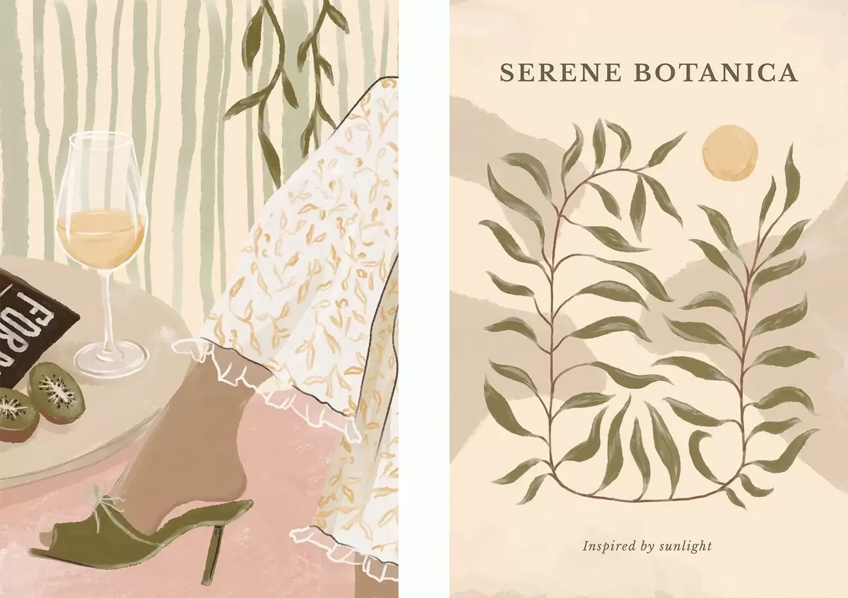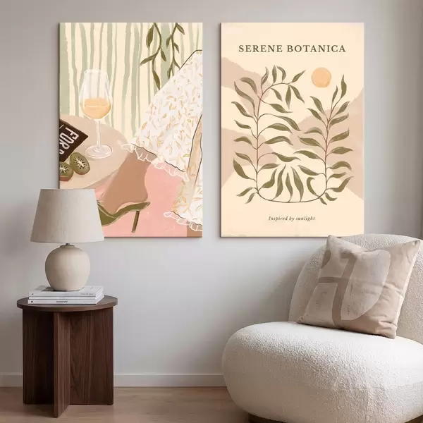 Maalid Veini klaas ja botaaniline plakat lähedal Nr m30106