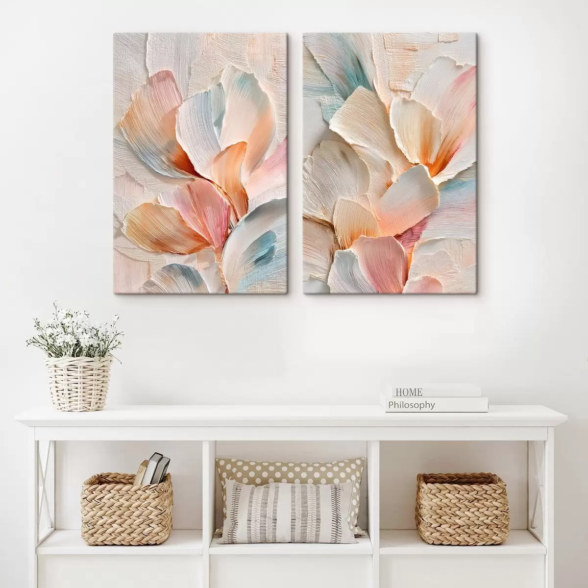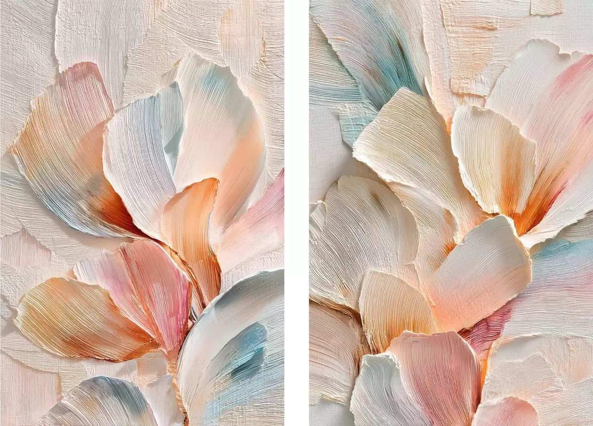Maalid Mahukad dekoratiivsed õielehed, millel on selge tekstuur, kaasaegses kunstistiilis Nr m30144