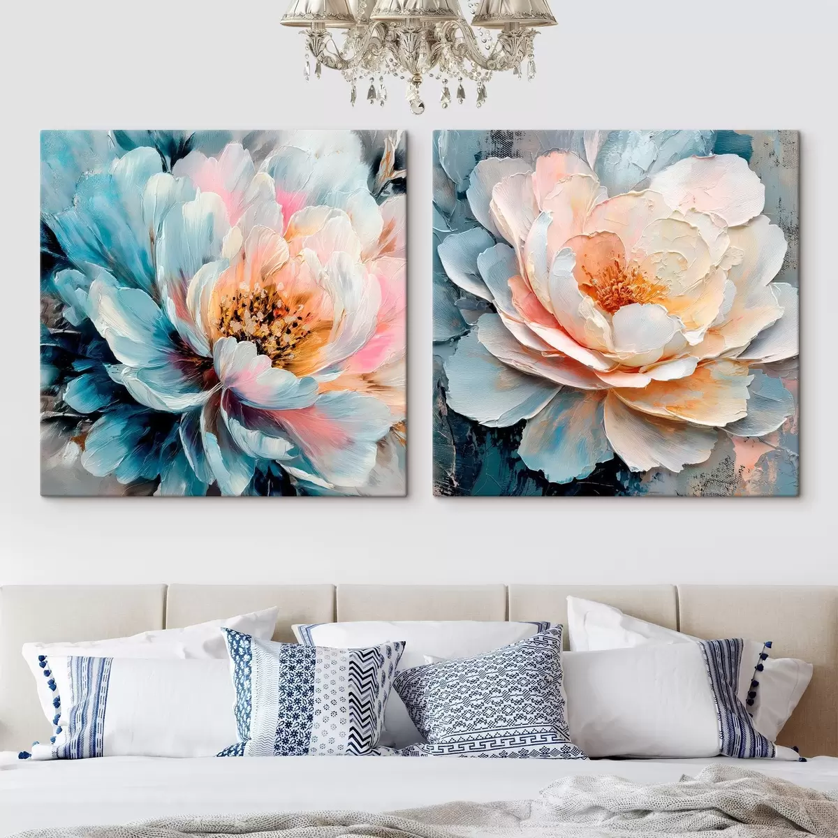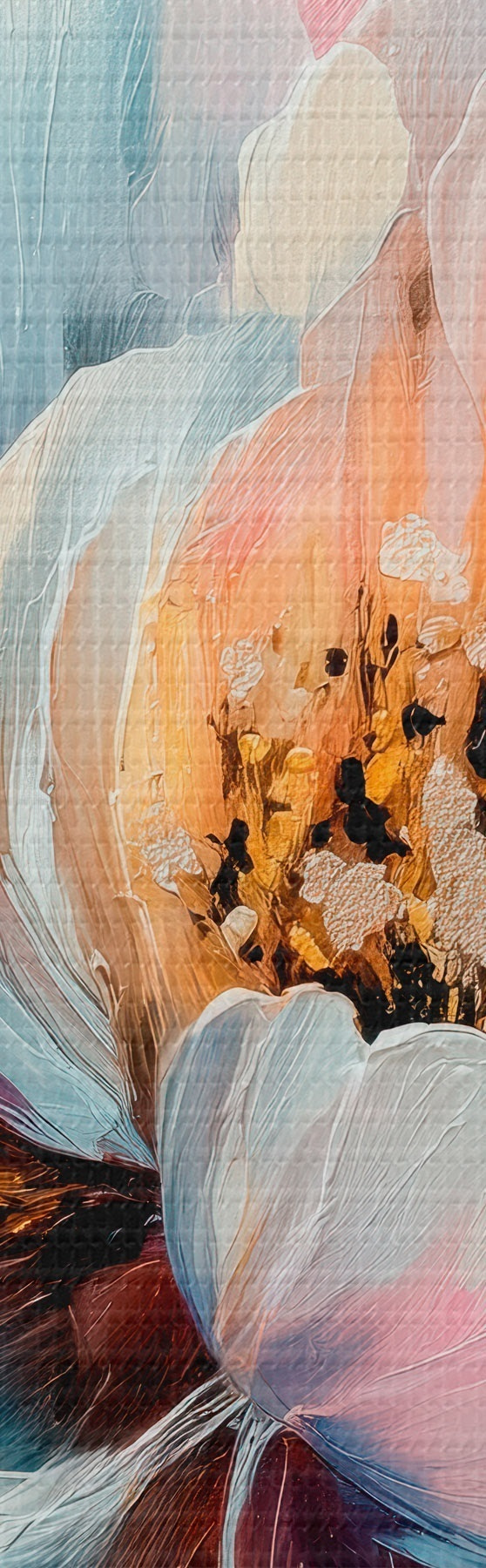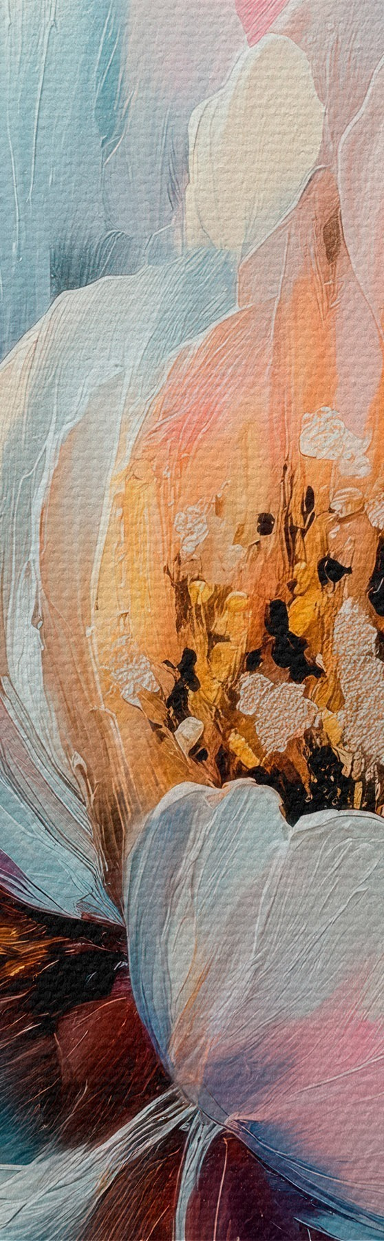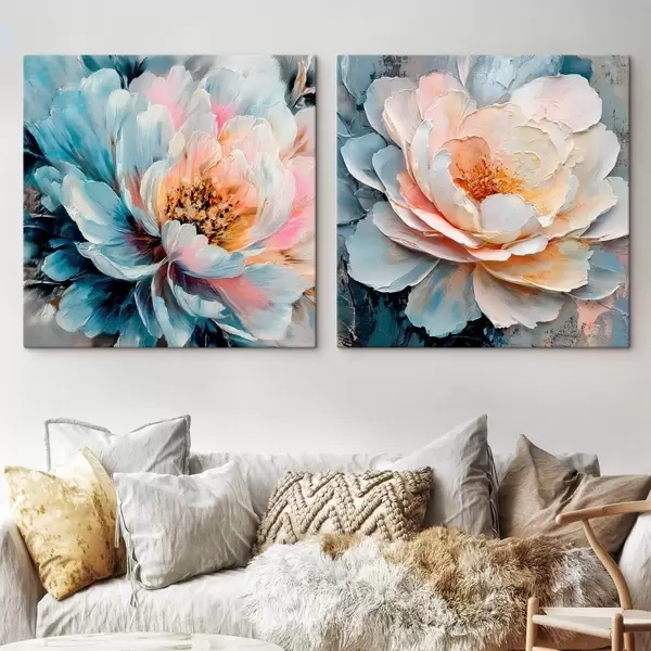 Maalid Abstraktne lillekompositsioon roosa ja sinise värvipaleti ning tekstuuriga kroonlehtedega Nr m30148