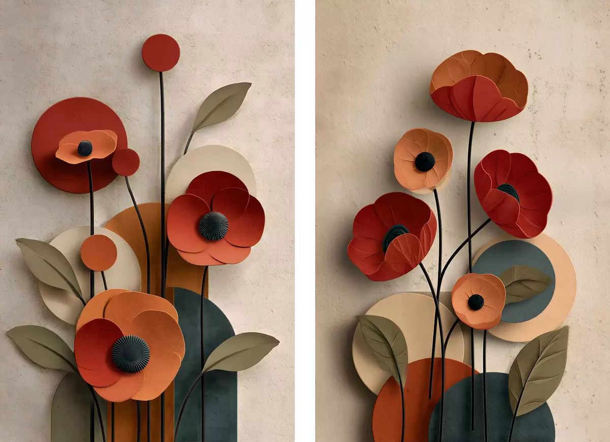 Maalid lihtsustatud stiilis lilled mahu efektiga Nr m30178