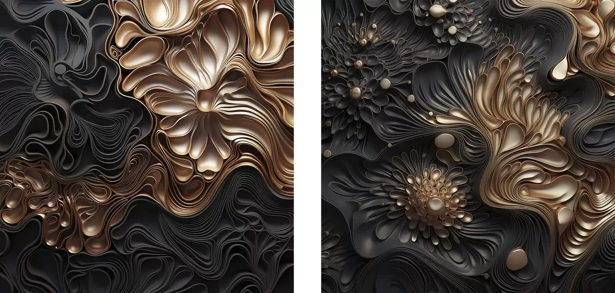 Maalid Abstraktsed, voolavad, orgaanilised tumedad kujundid, mis loovad tekstuurse kaasaegse kunsti Nr m30196