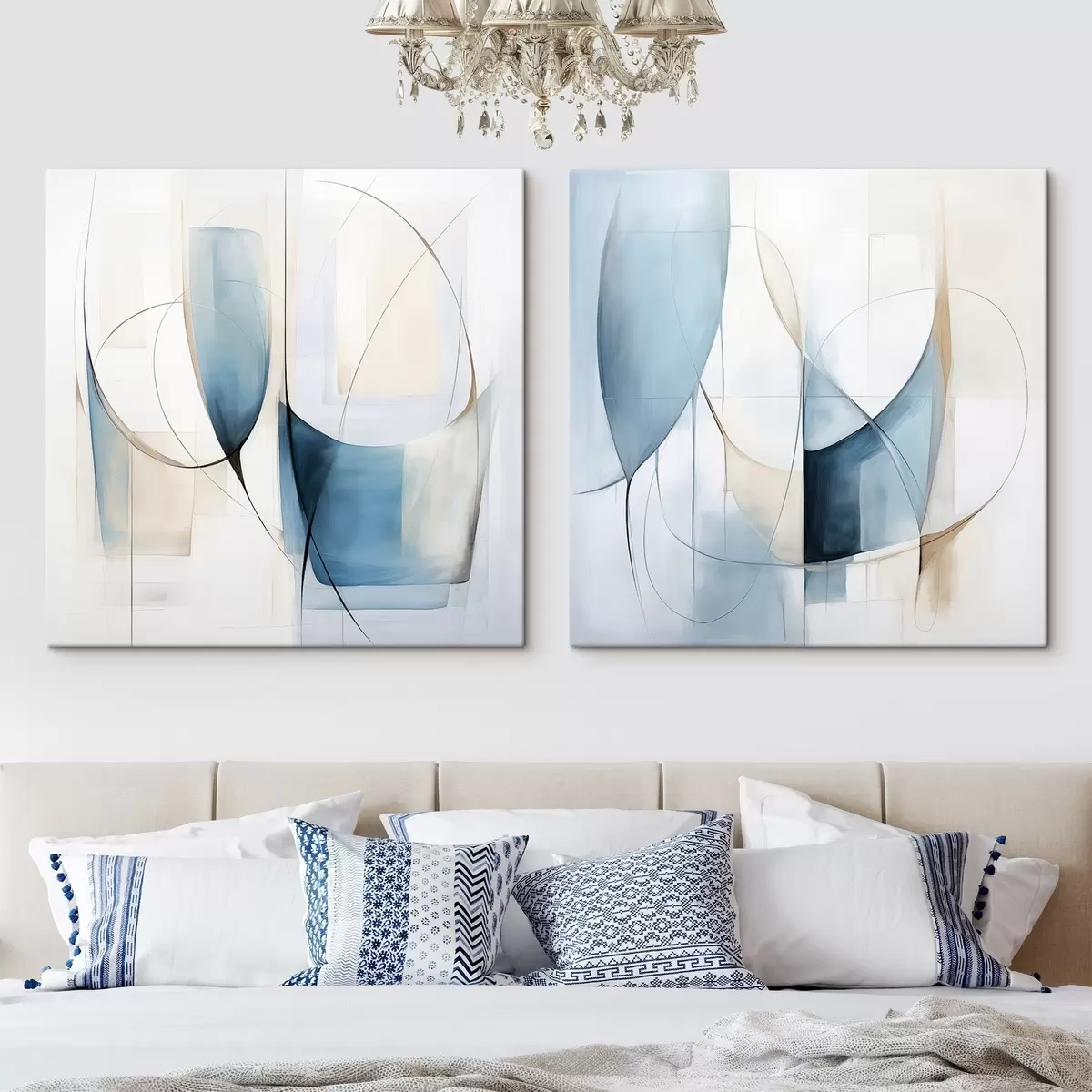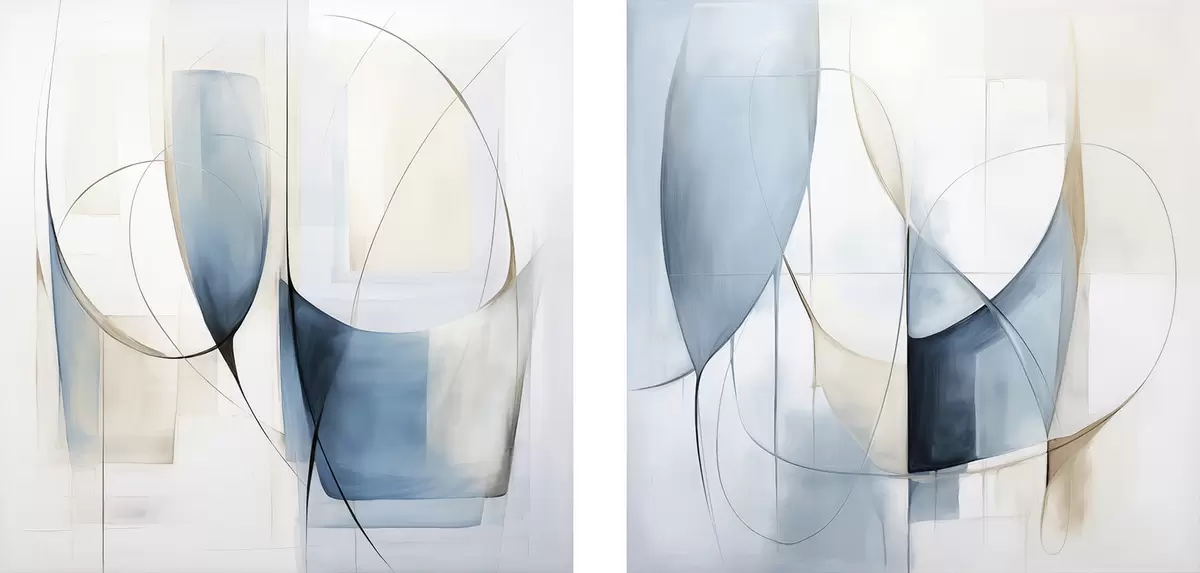 Maalid Abstraktne minimalistlik kompositsioon siniste ja beežide kujunditega Nr m30206