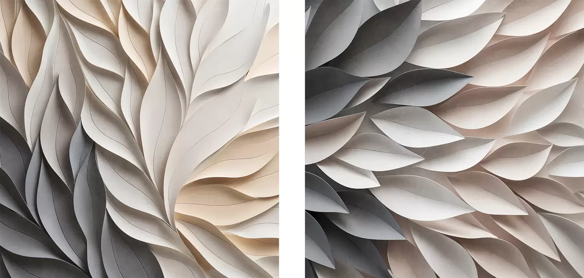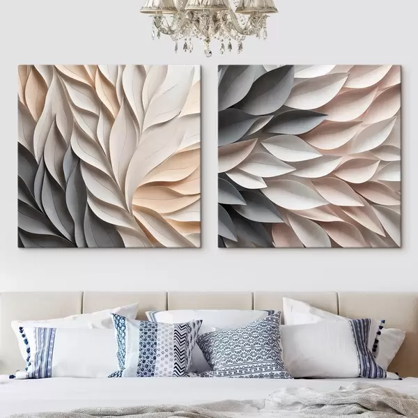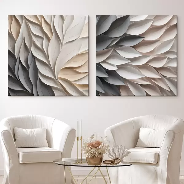 Maalid Tekstuuriga üksteisega kattuvad abstraktsed lehekujud neutraalsetes beeži, kreemi ja halli toonides Nr m30208