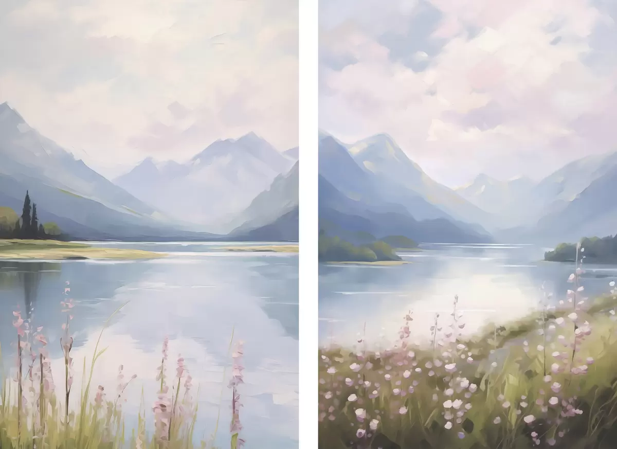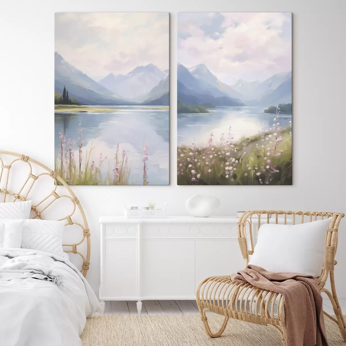 Maalid Järve lähedal mägedes imitatsiooni maalimine Nr m30248