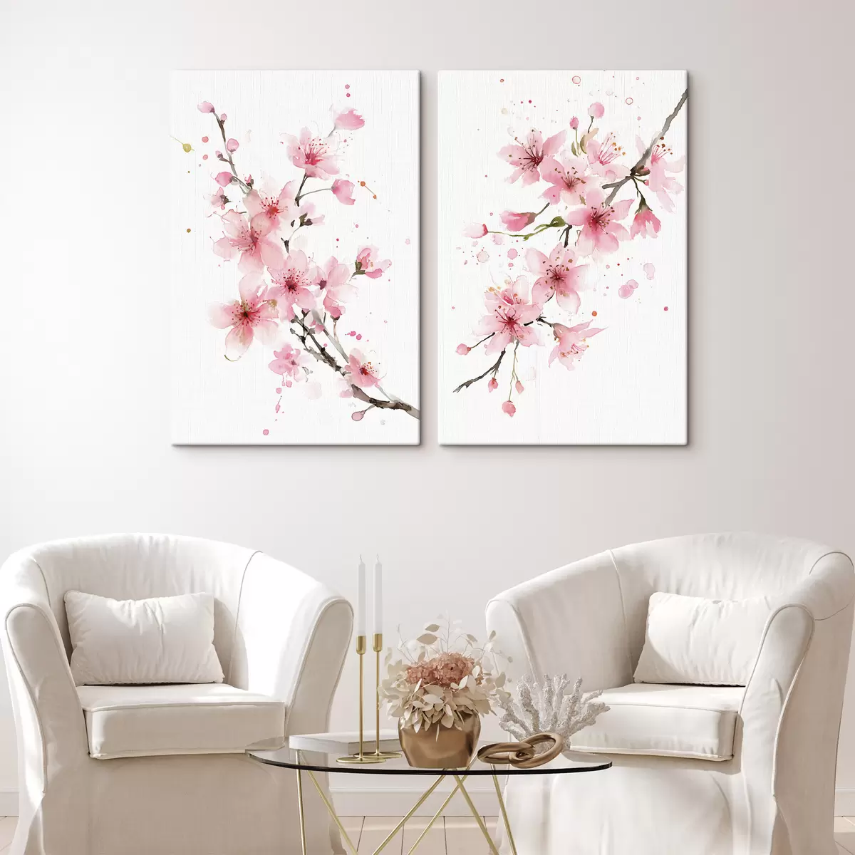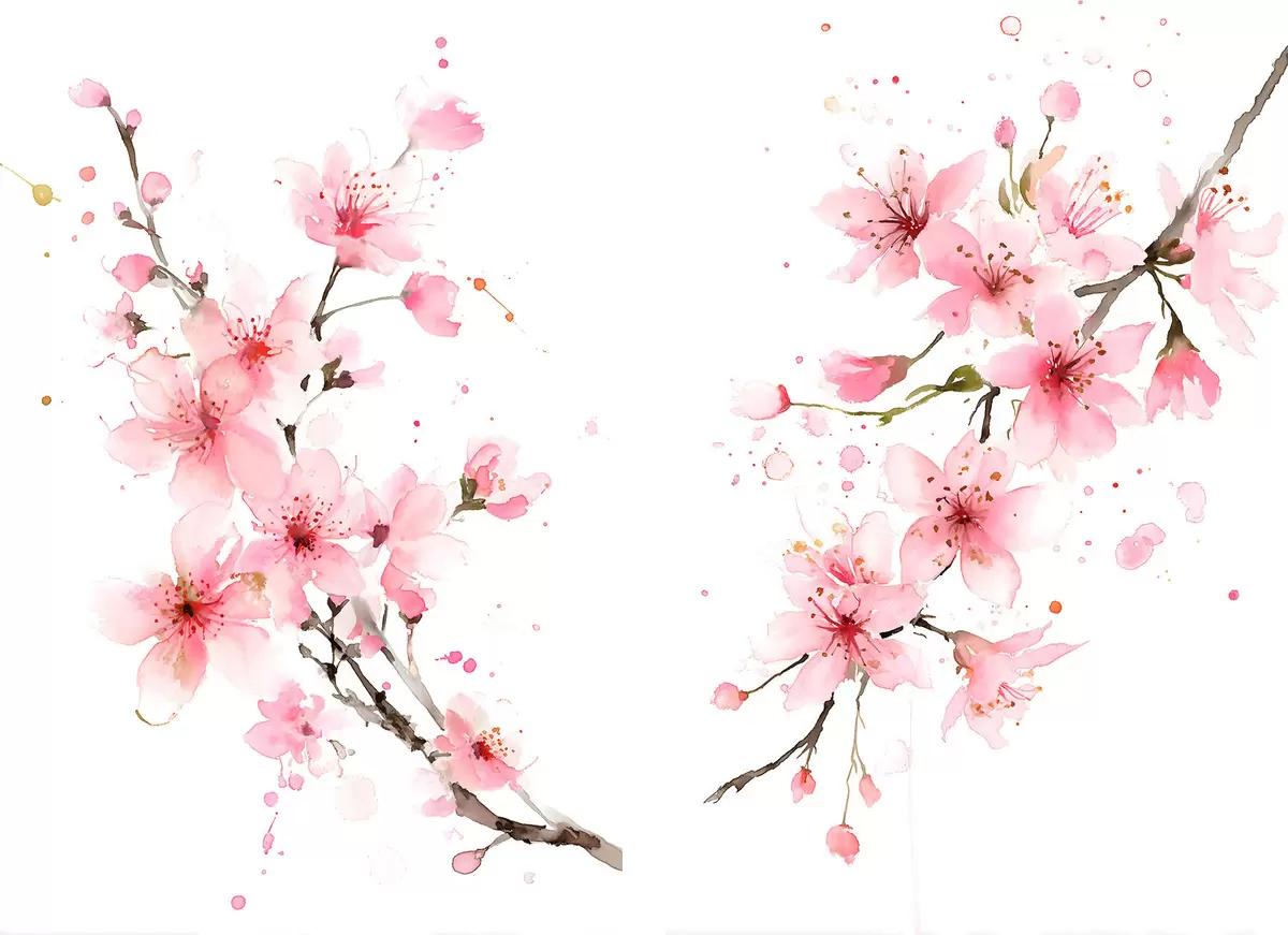 Maalid õitsvad aprikoosipuuoksad akvarellistiilis Nr m30257