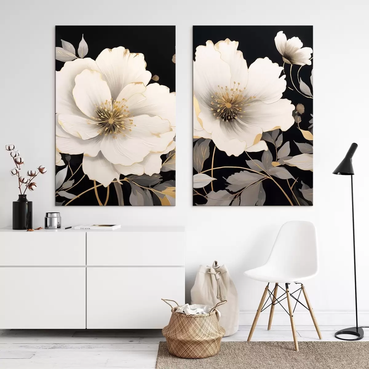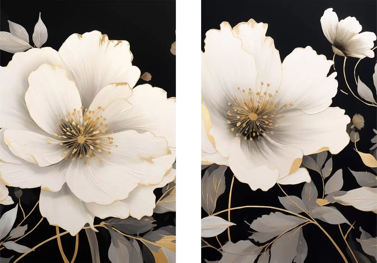 Maalid valged lilled mustal taustal Nr m30280