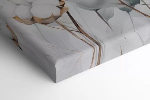 Maalid Valge puuvillataim helesiniste-roheliste lehtedega heledal taustal Nr m30322