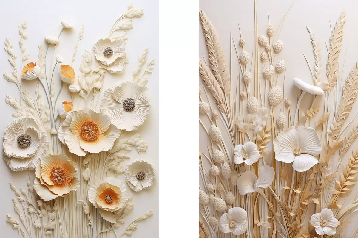 Maalid Kreemikate ja oranžide moonide kimp kuivatatud nisuvartega Nr m30324