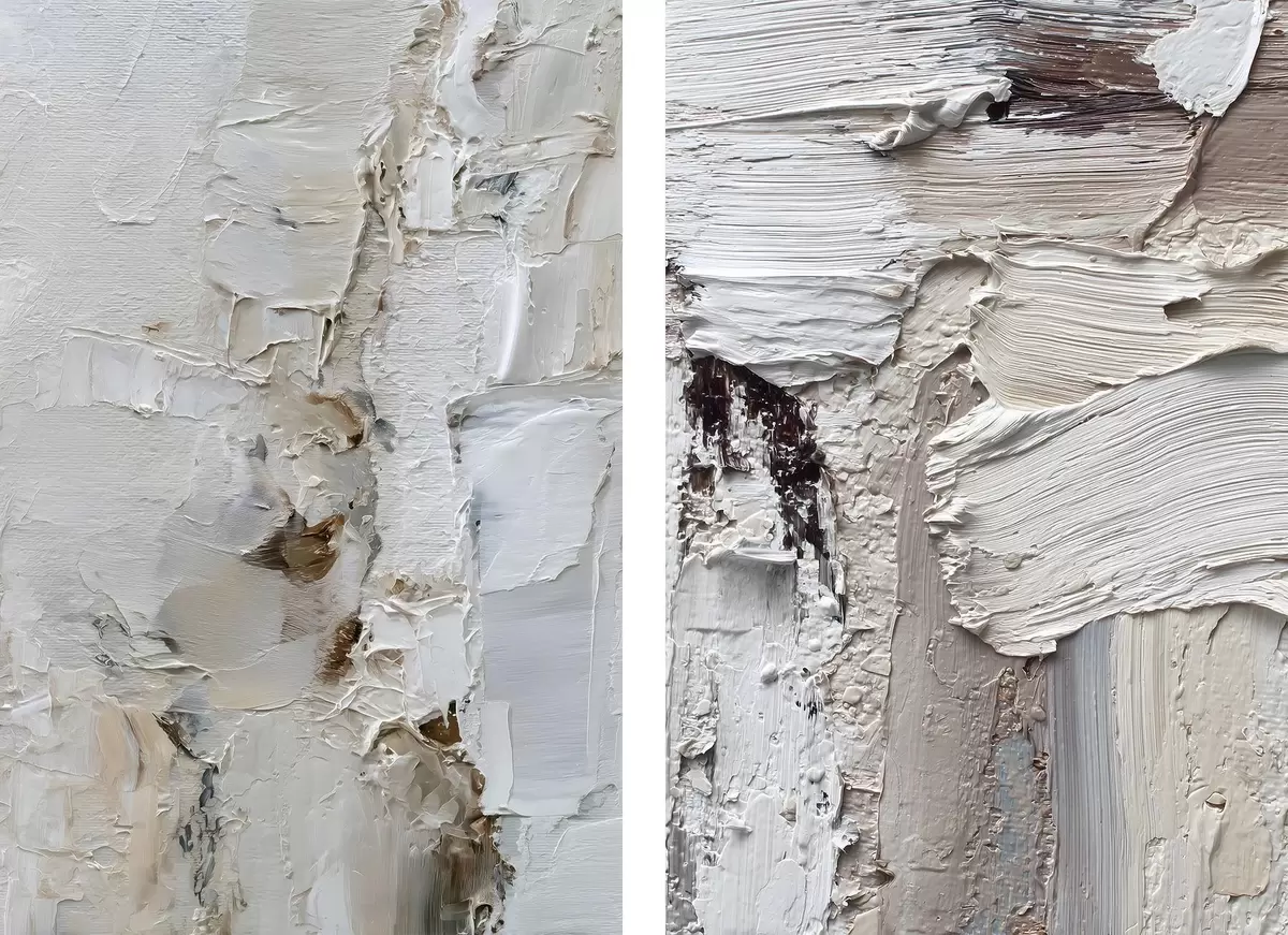 Selle lõuendi peenike niidipunus meenutab professionaalse kunstniku lõuendi pinda.