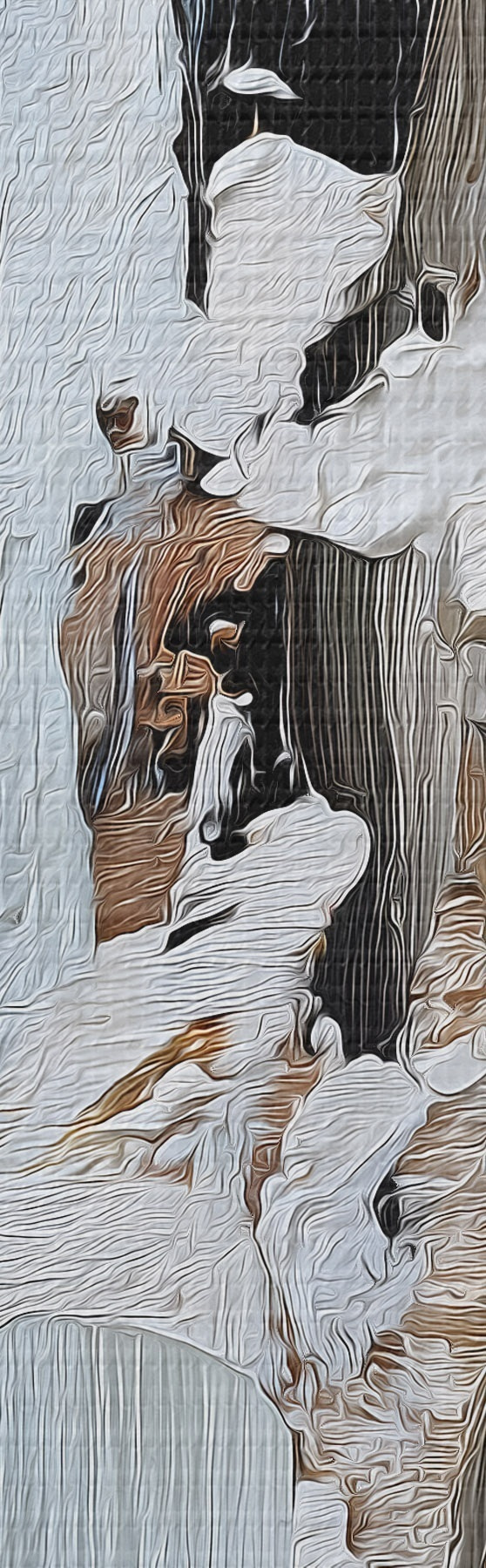 Selle lõuendi peenike niidipunus meenutab professionaalse kunstniku lõuendi pinda.