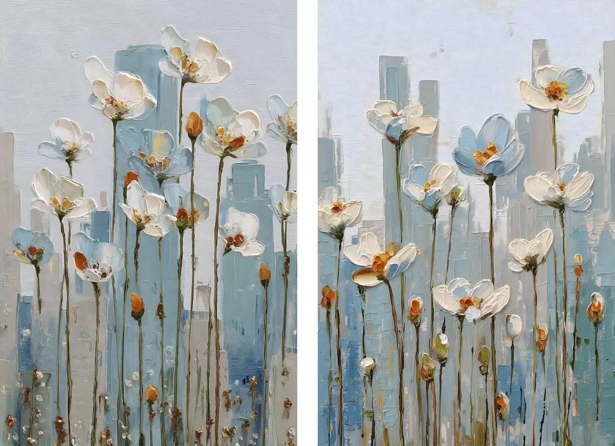 Maalid lilled linna taustal, õlimaalistiilis Nr m30333