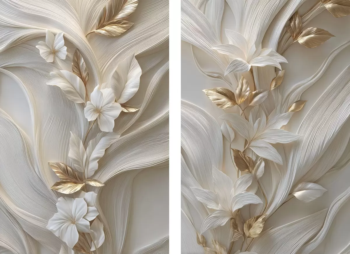 Maalid kolmemõõtmelise lehe, tekstuuride ja lillede suurepärane imitatsioon Nr m30334