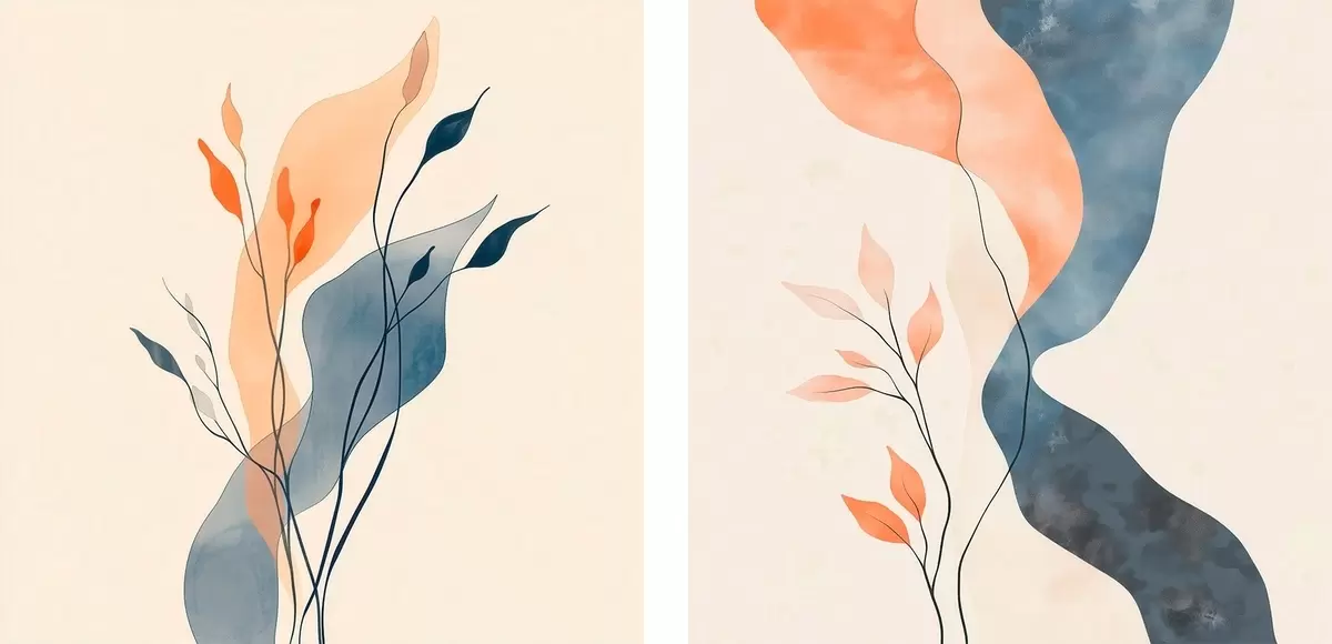 Maalid Kaunistavad oksad õhukeste joontega kaasaegses maalikunstistiilis Nr m30346