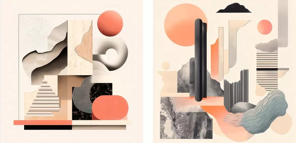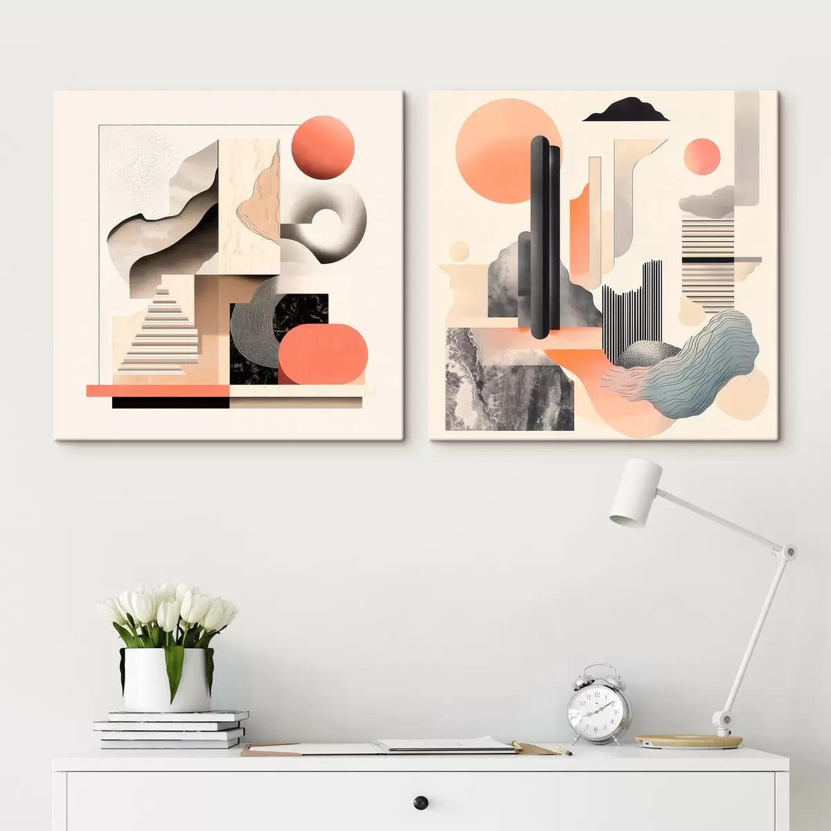 Maalid Geomeetriline abstraktsioon arhitektuuriliste elementidega minimalistlikus stiilis Nr m30348
