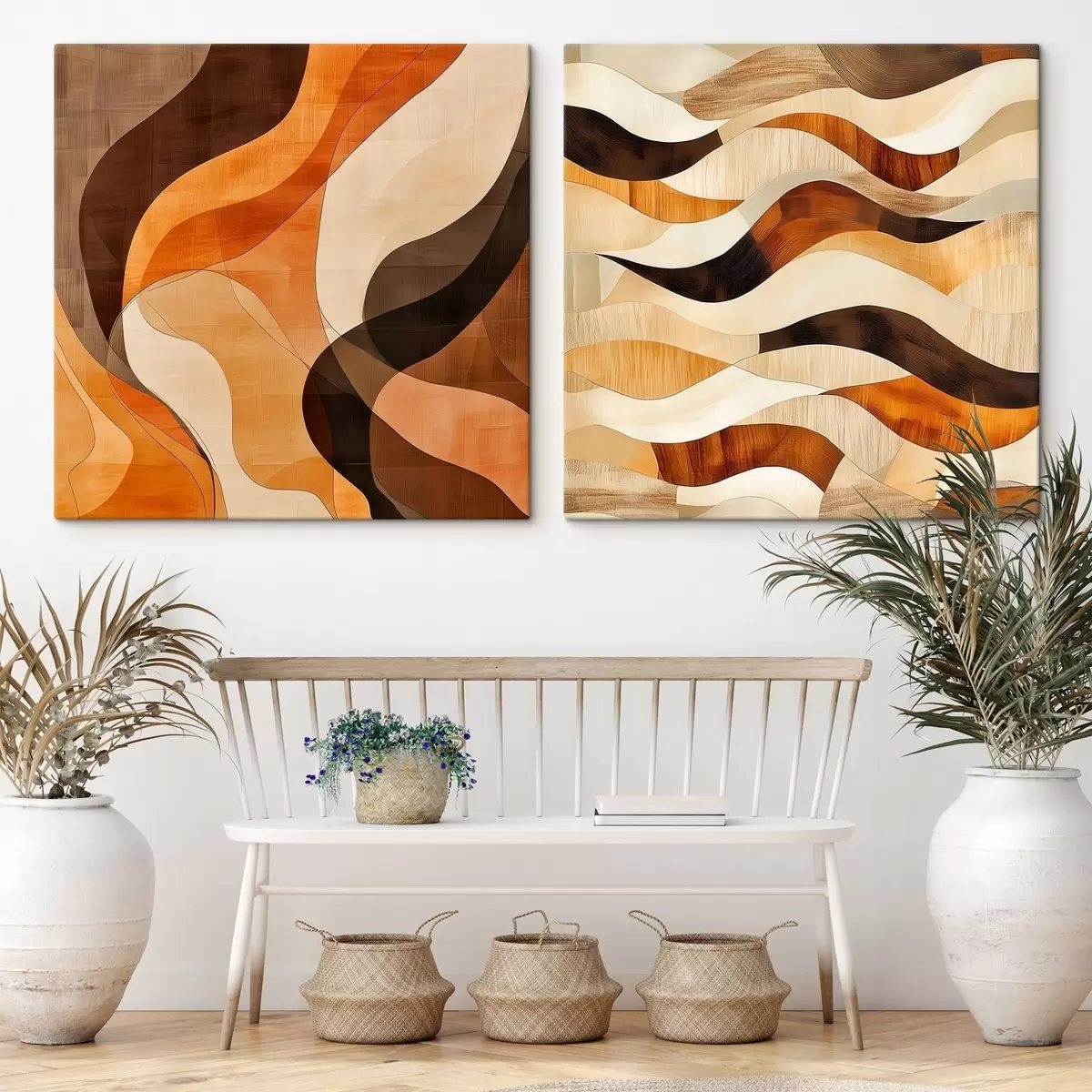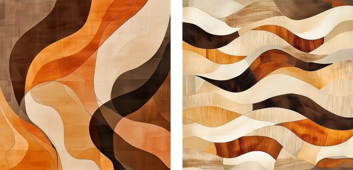 Maalid Abstraktne kompositsioon laineliste joontega soojas pruuni-beeži toonides Nr m30352