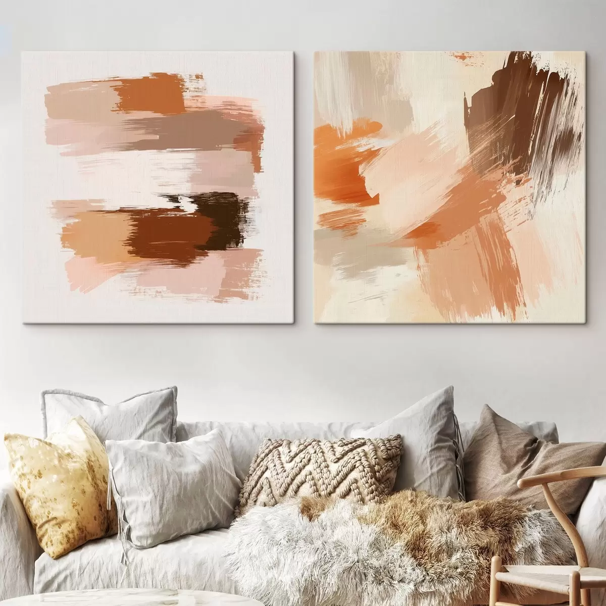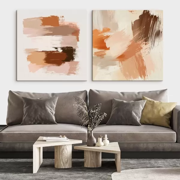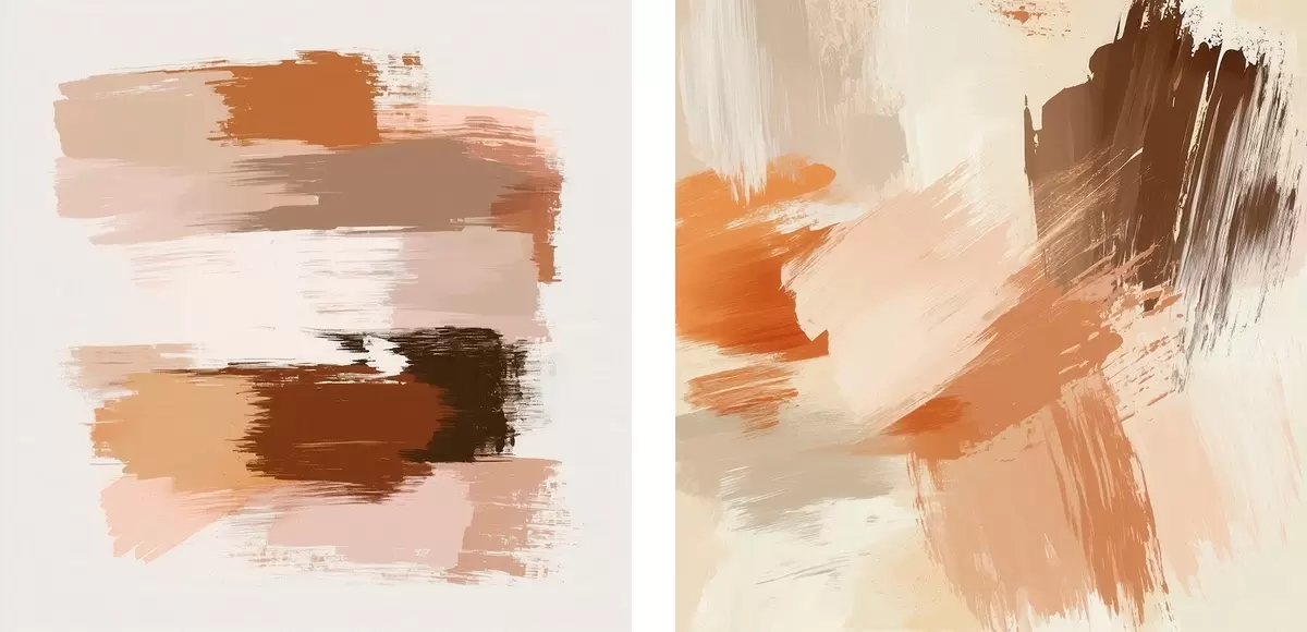 Maalid Dekoratiivne kunst soojades pruuni-beežides toonides, maalilise pintslitõmbega Nr m30355