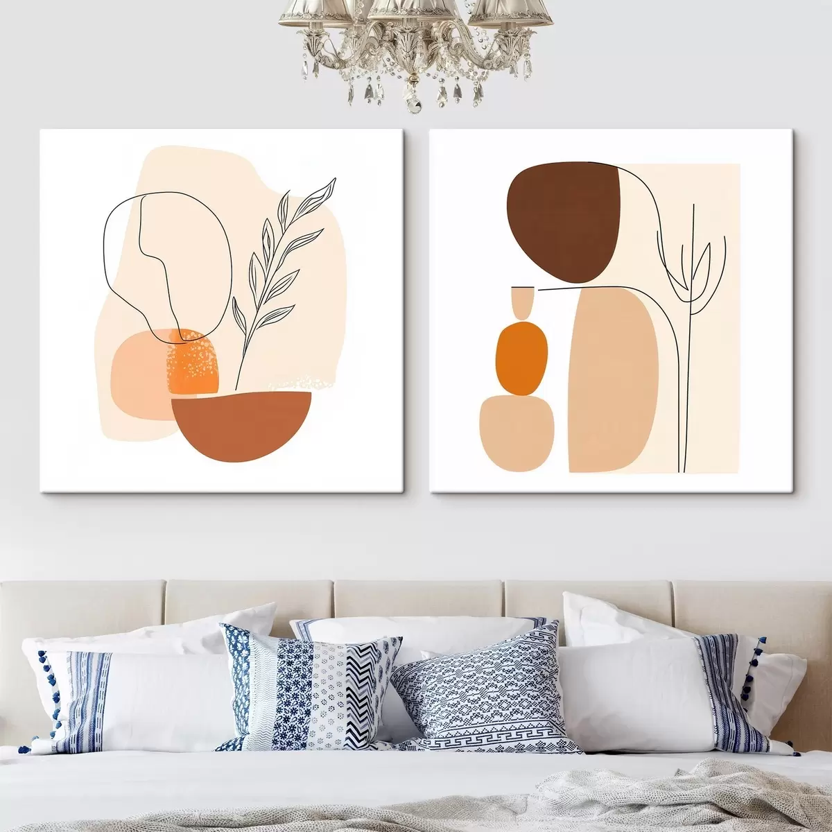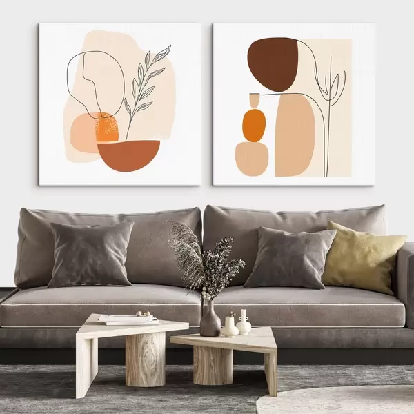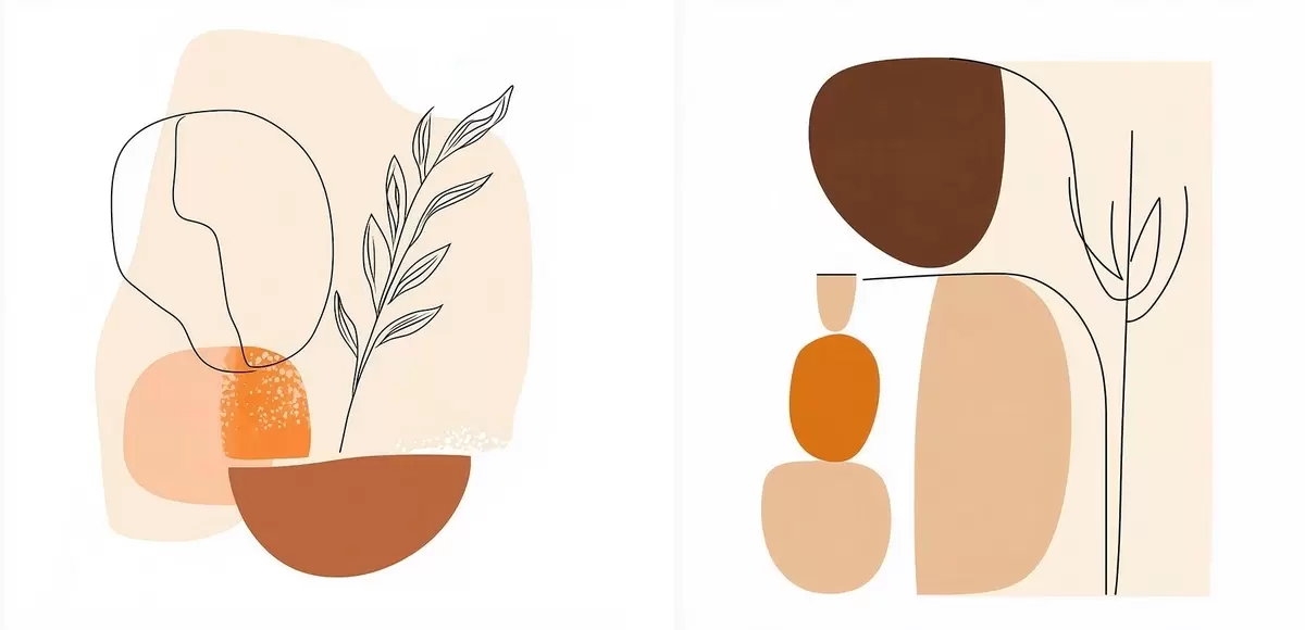Maalid Abstraktsed lilled soojas beež-korallitoonides: minimalistlikus stiilis illustratsioon Nr m30362
