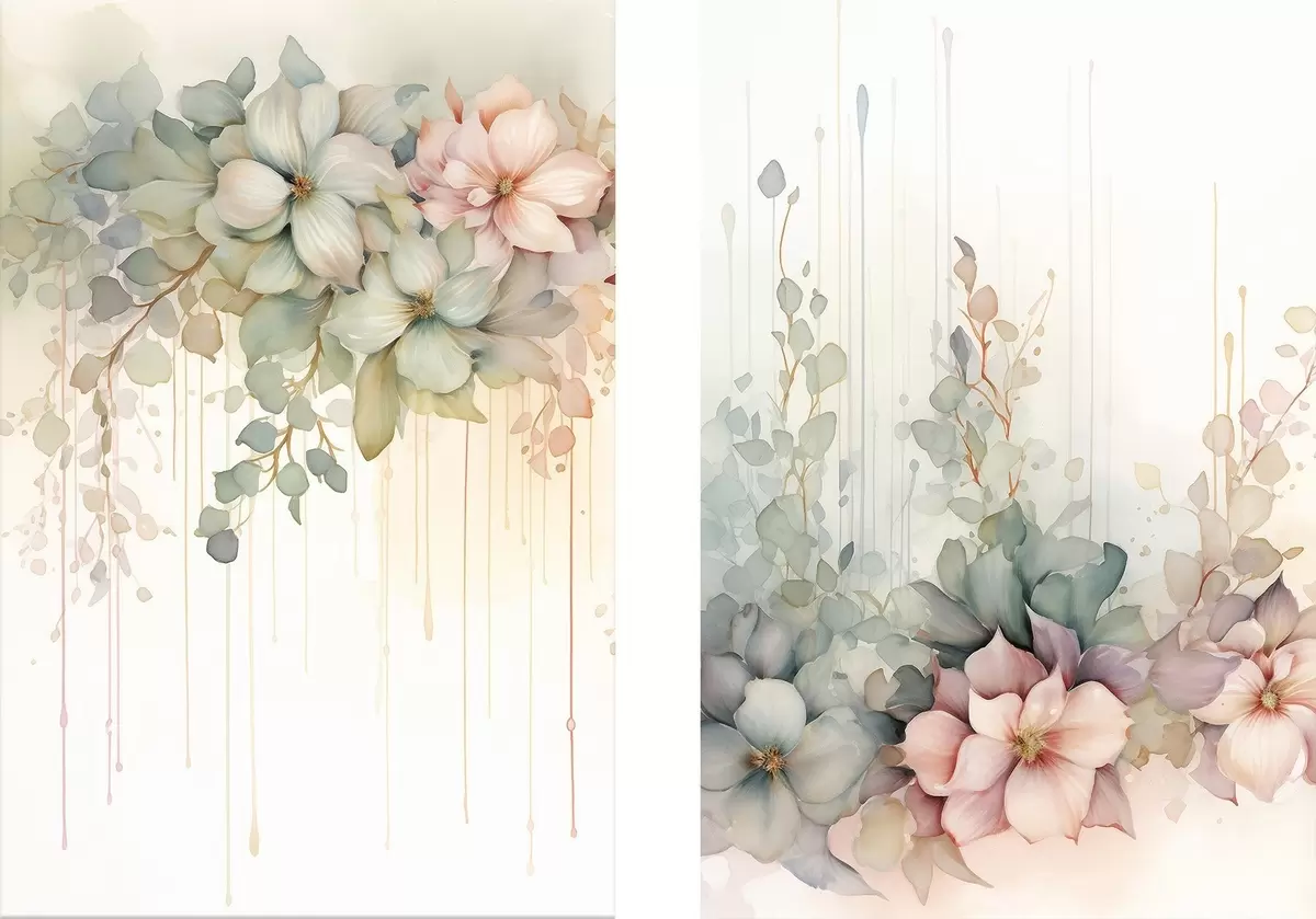 Maalid Õrn lillekompositsioon, akvarellitehnikas Nr m30387