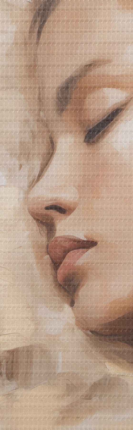 Selle lõuendi peenike niidipunus meenutab professionaalse kunstniku lõuendi pinda.