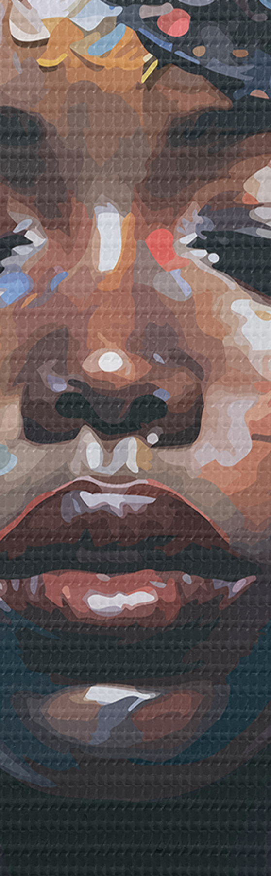 Selle lõuendi peenike niidipunus meenutab professionaalse kunstniku lõuendi pinda.