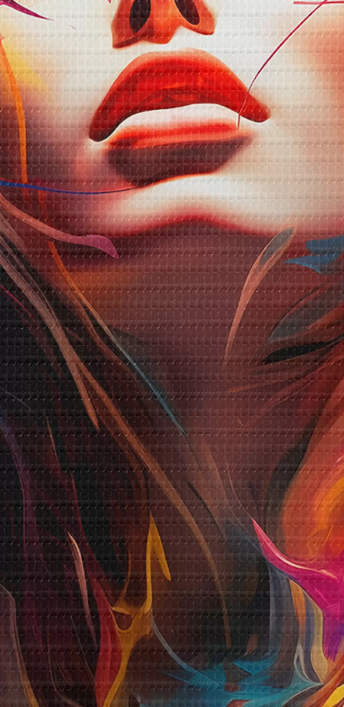 Selle lõuendi peenike niidipunus meenutab professionaalse kunstniku lõuendi pinda.