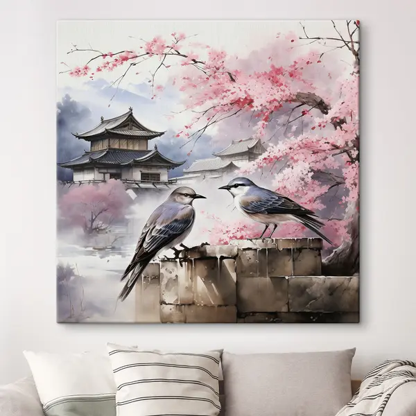 Maalid Rahulikud linnud õitsvate puude all Nr s36815