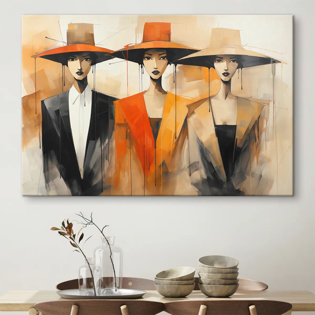 Maalid Stiilne trio elurõõmsates mütsides Nr s36826