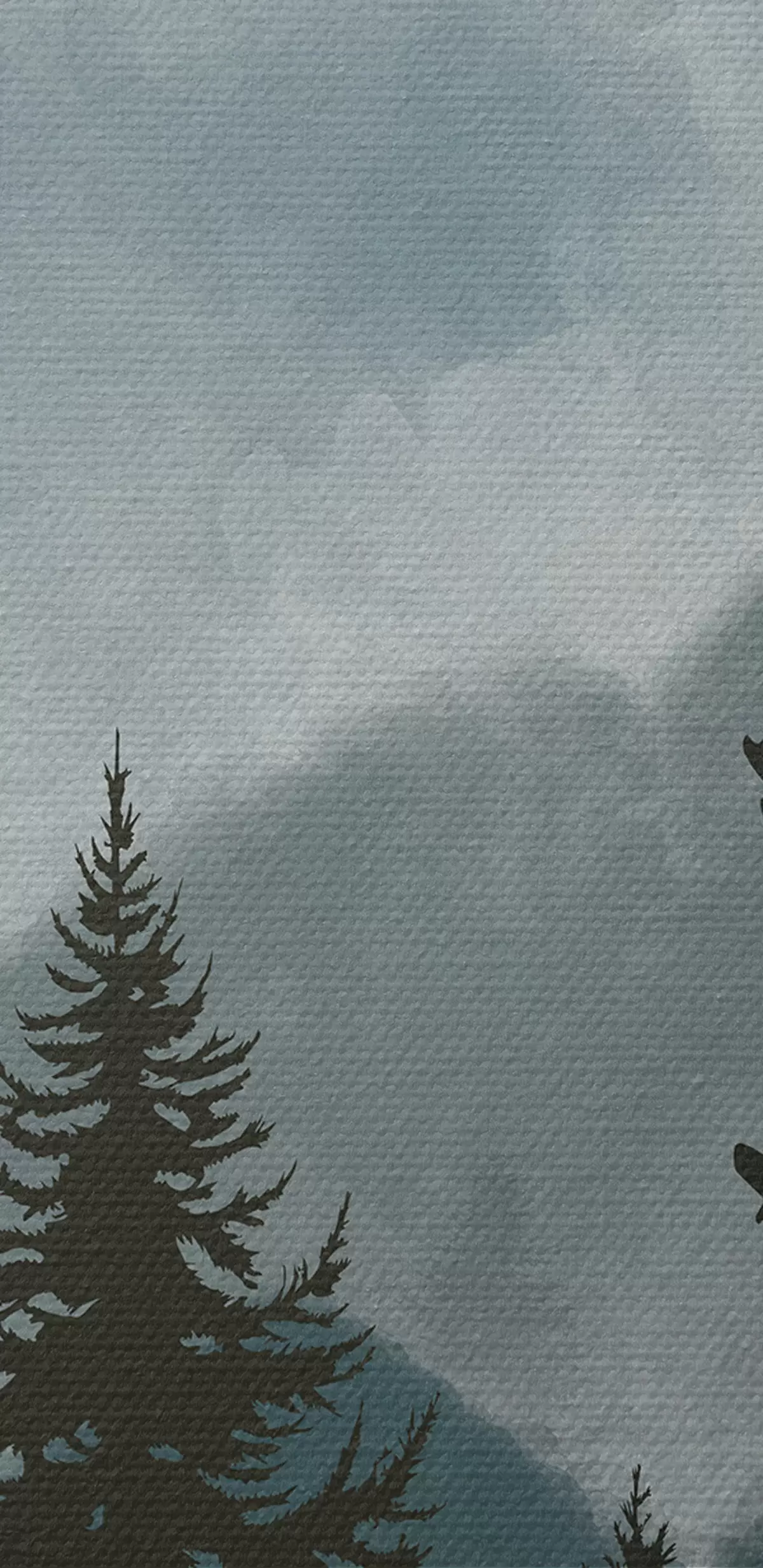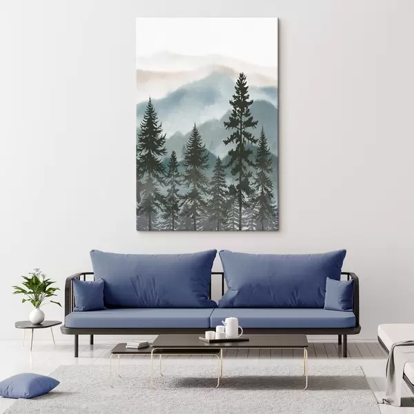 Maalid Uduvihmased mäed ja männipuude siluetid Nr s37017