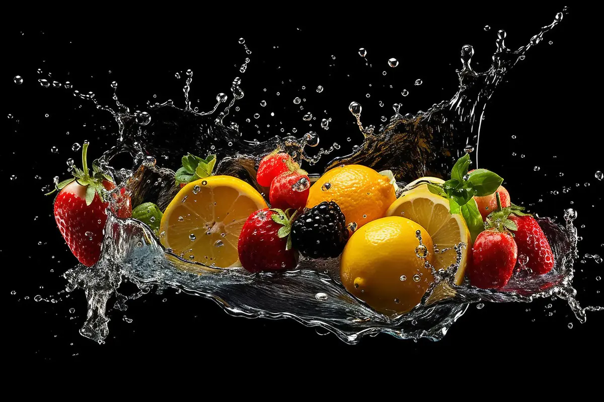 Maalid Värsked puuviljad vees pritsimas Nr s37044