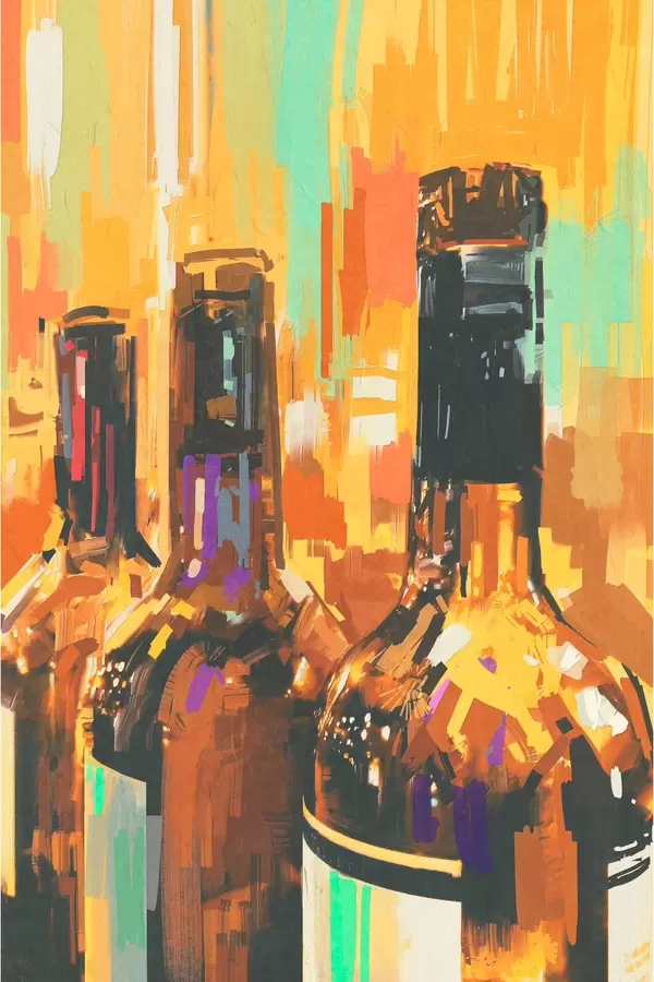 Maalid Pudelite rühm värvilisel taustal Nr s37086