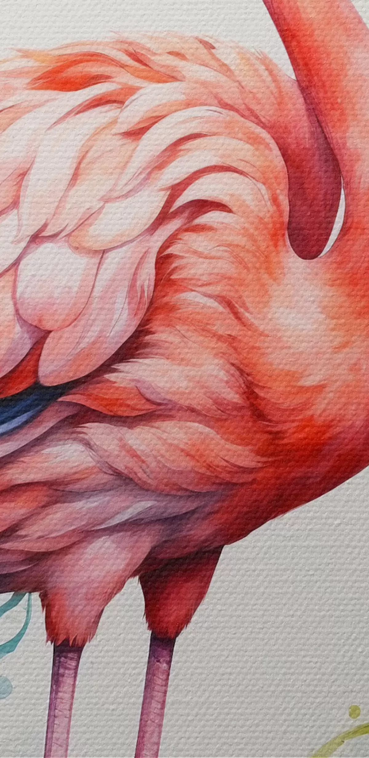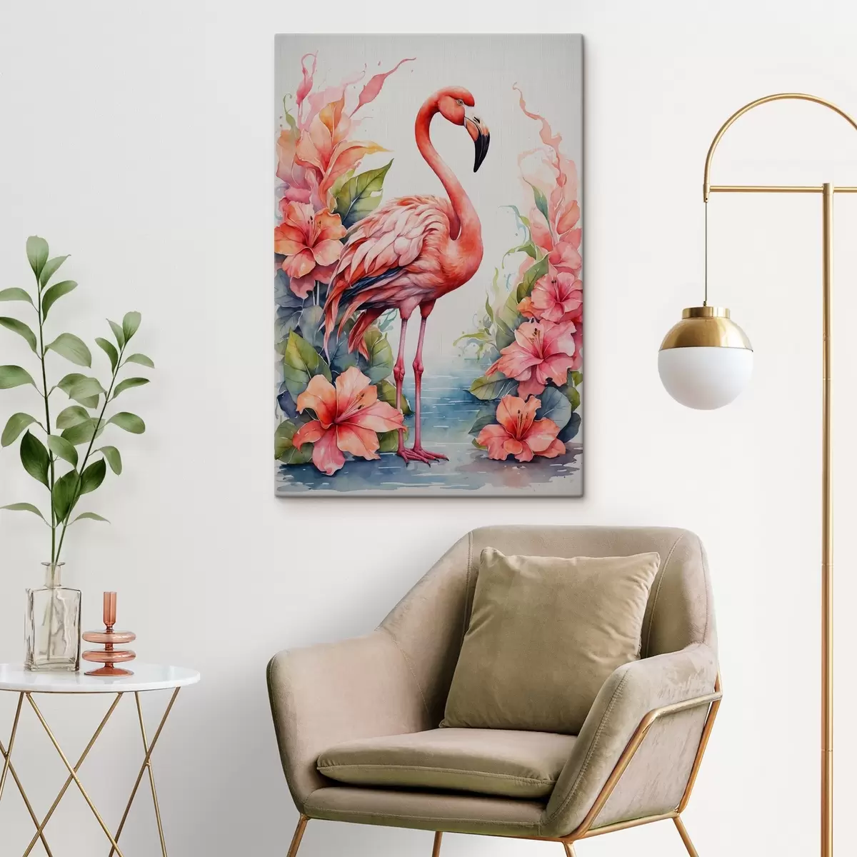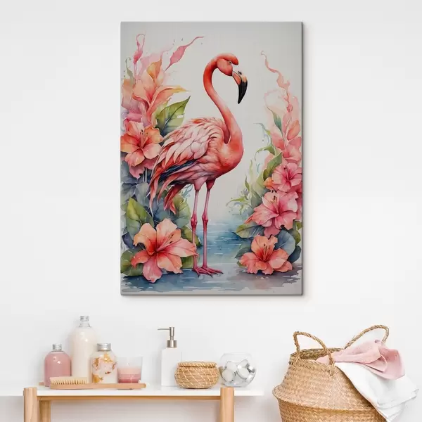 Maalid Elegantne flamingo elavate lillede keskel Nr s37125
